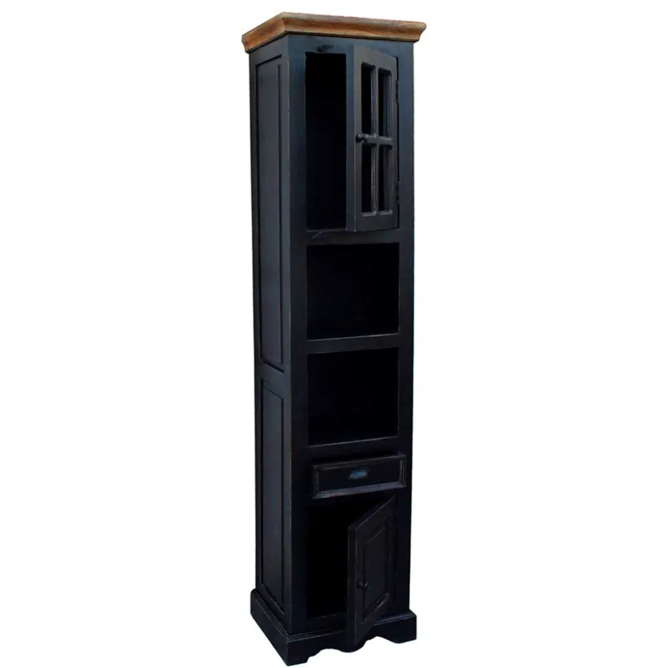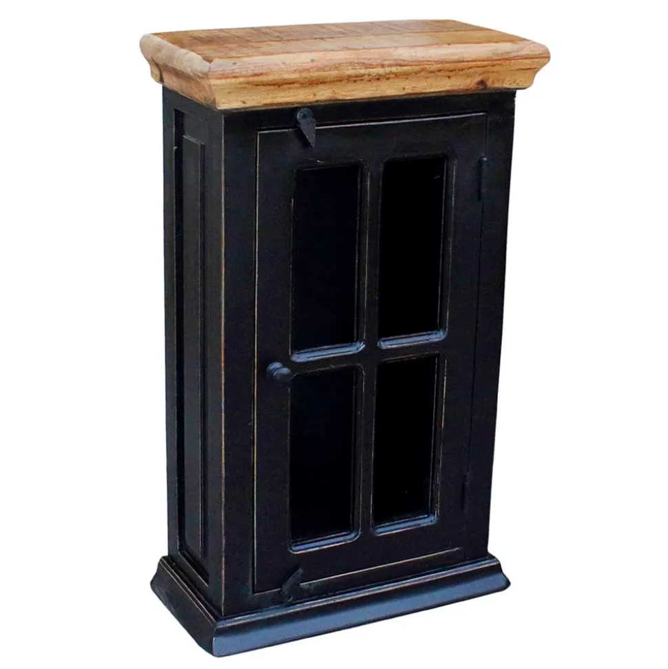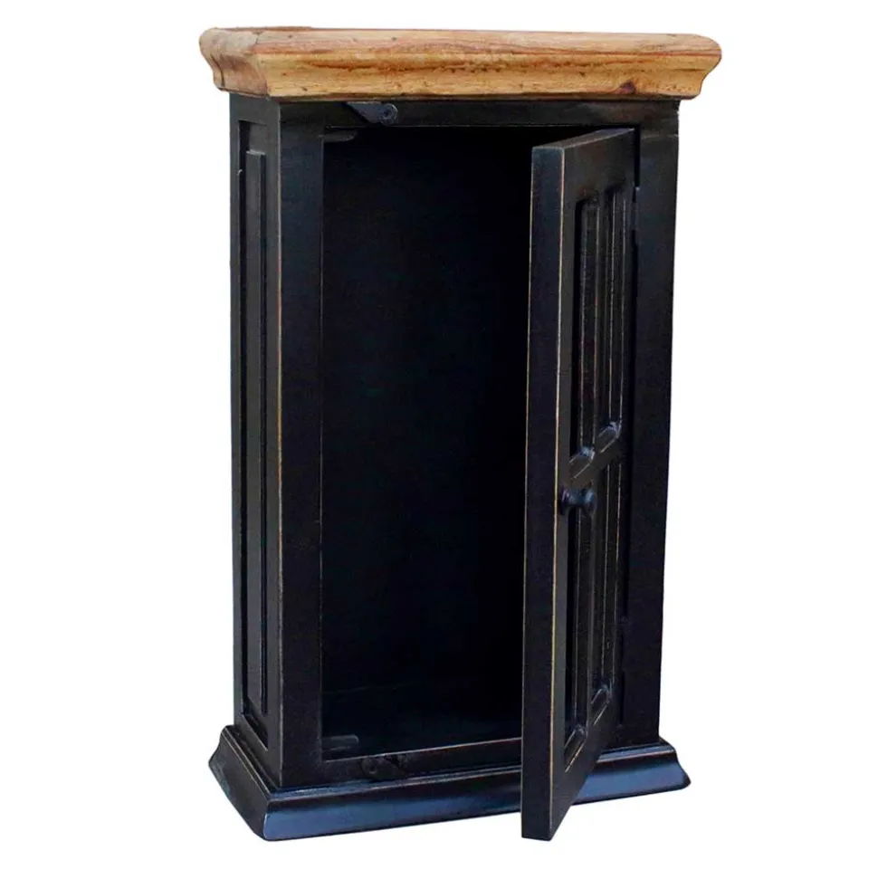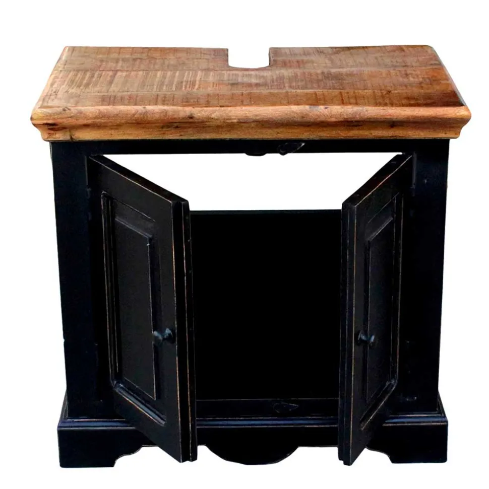 - Lackierte Oberflächen mit Antik Finish in Schwarz, Deckplatten aus Massivholz honigfarbig lackiert