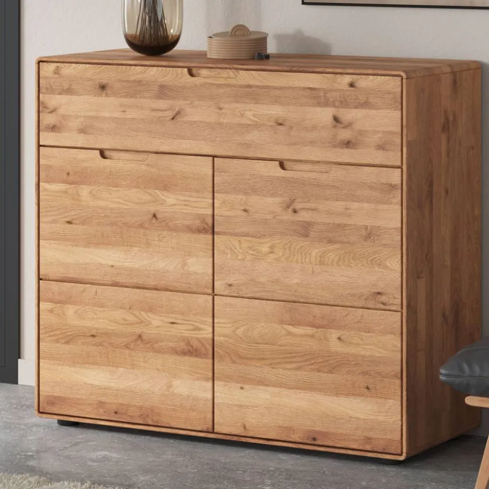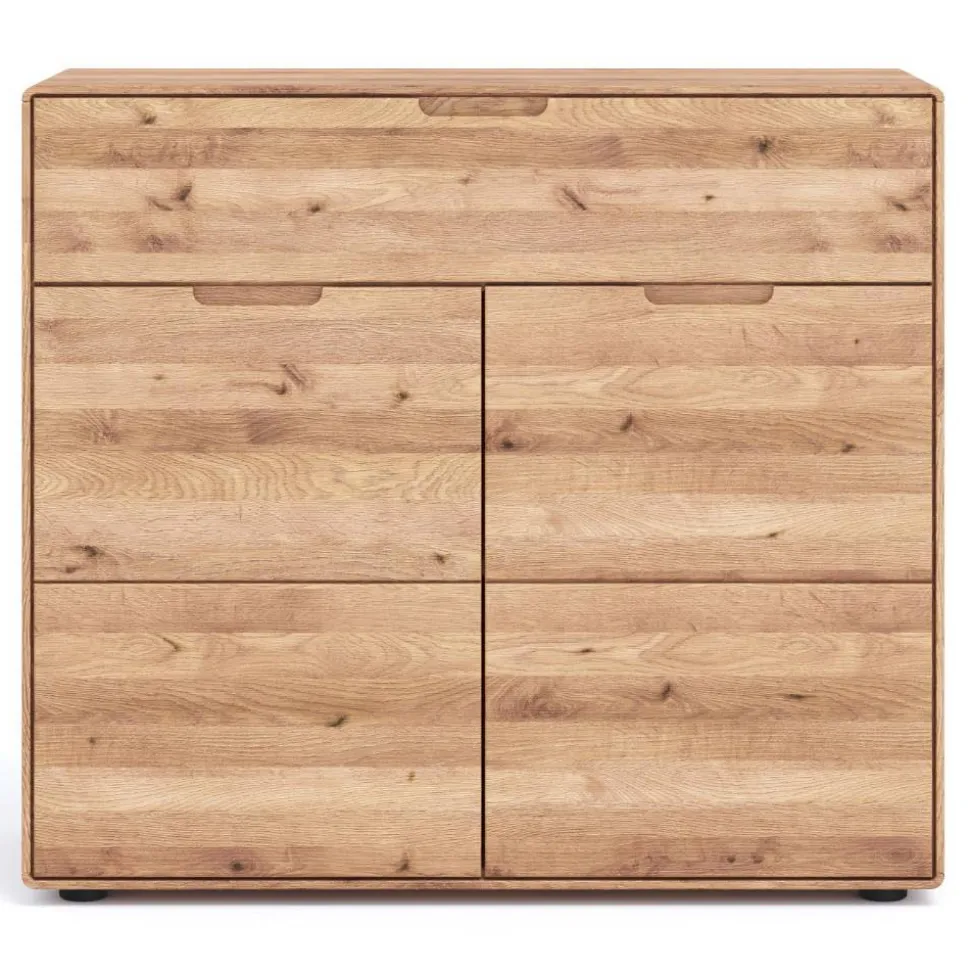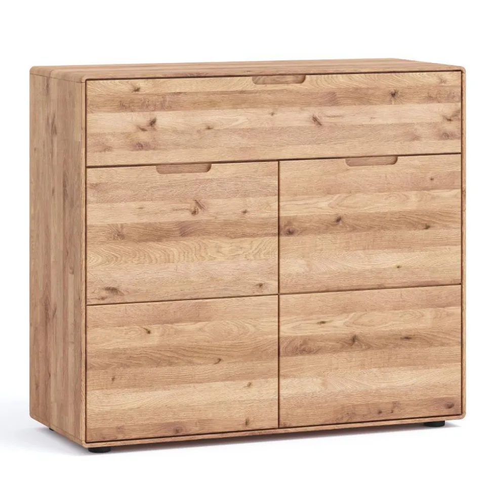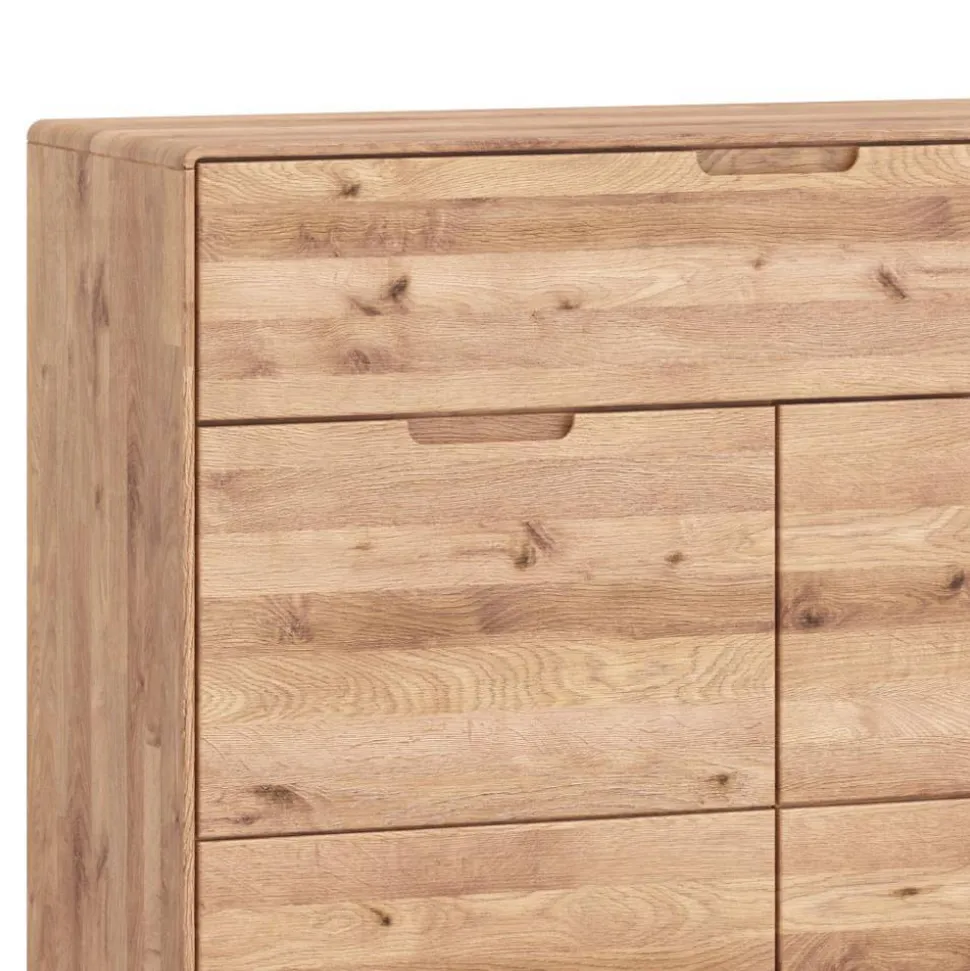 Ein Möbelstück, das mehr ist als nur Stauraum: Die Kombi-Kommode „Holiday“ bringt mit ihrer modernen Formsprache, der natürlichen Ausstrahlung massiver Wildeiche und höchster Verarbeitungsqualität ein Stück Lebensqualität in Ihr Zuhause. Sie schafft den Spagat zwischen zeitlosem Design und praktischer Alltagstauglichkeit – ein echtes Lieblingsstück mit bleibendem Wert.