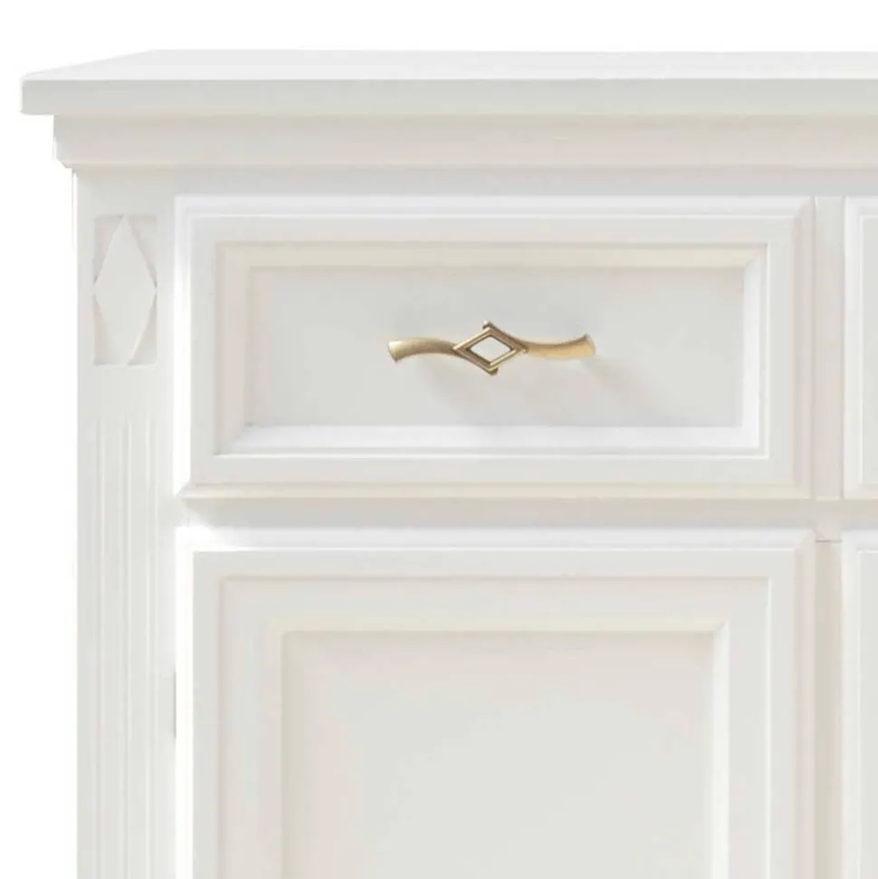 Das stabile Sockelgestell gewährleistet festen Stand und unterstreicht die klassische Gestaltung der Kommode. Dekorativ gestaltete Metallgriffe in Goldfarben setzen edle Akzente und runden das Gesamtbild stilvoll ab. Durch die handwerkliche Fertigung entstehen natürliche Farbunterschiede, Haarrisse oder kleine Unebenheiten, wodurch jedes Exemplar zu einem einzigartigen Einzelstück wird.