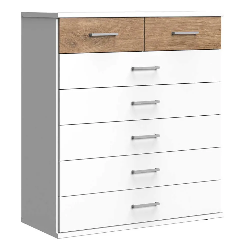 Gefertigt aus stabiler Spanplatte, bietet die Kommode „Calassina“ eine langlebige und robuste Struktur. Spanplatten sind bekannt für ihre hohe Festigkeit und Stabilität bei gleichzeitiger Leichtigkeit, was den Transport und Aufbau deutlich erleichtert. Dank der folierten Oberfläche in edlem Weiß und authentischer Holzoptik Plankeneiche strahlt die Kommode nicht nur natürliche Schönheit aus, sondern ist auch besonders pflegeleicht. Die Folierung schützt die Oberfläche vor Kratzern, Feuchtigkeit und Abnutzung – ideal für den täglichen Gebrauch.