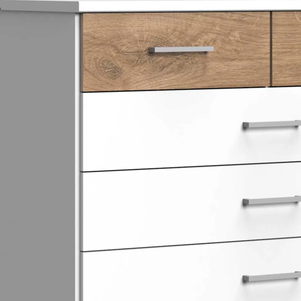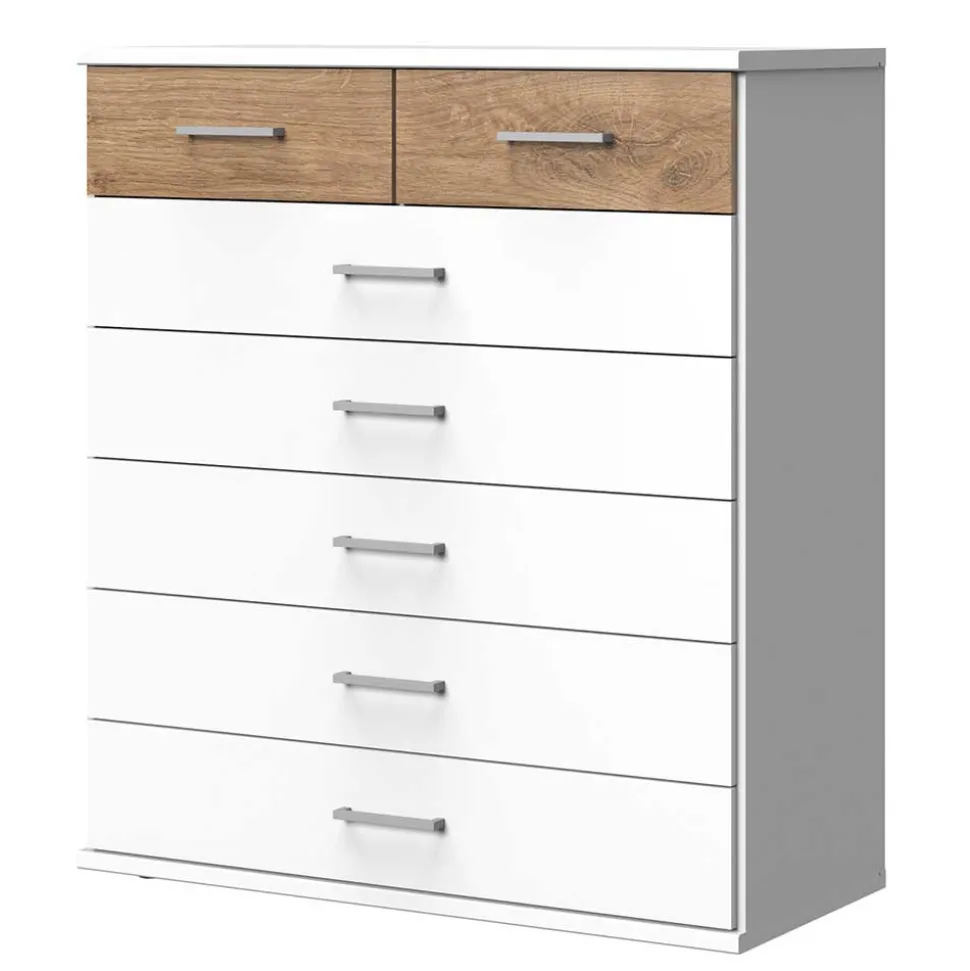 - Dezente Kommode in Weiß und Eichefarben