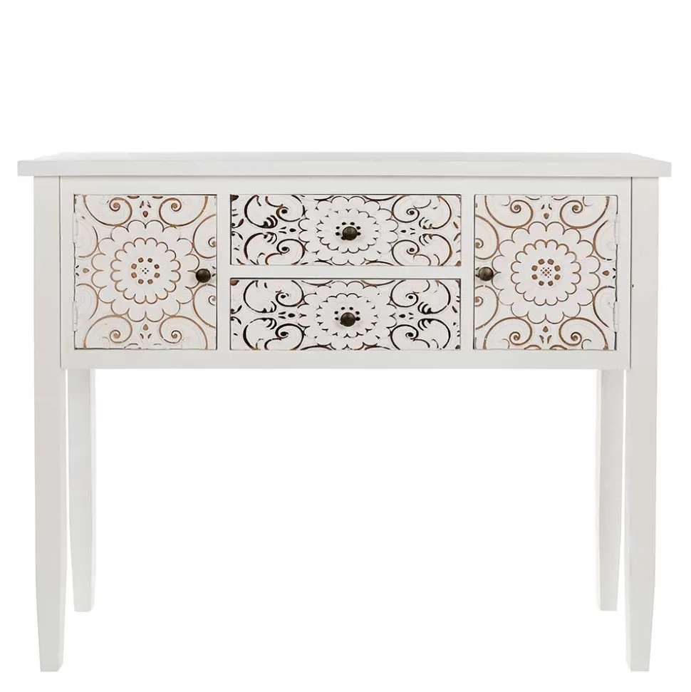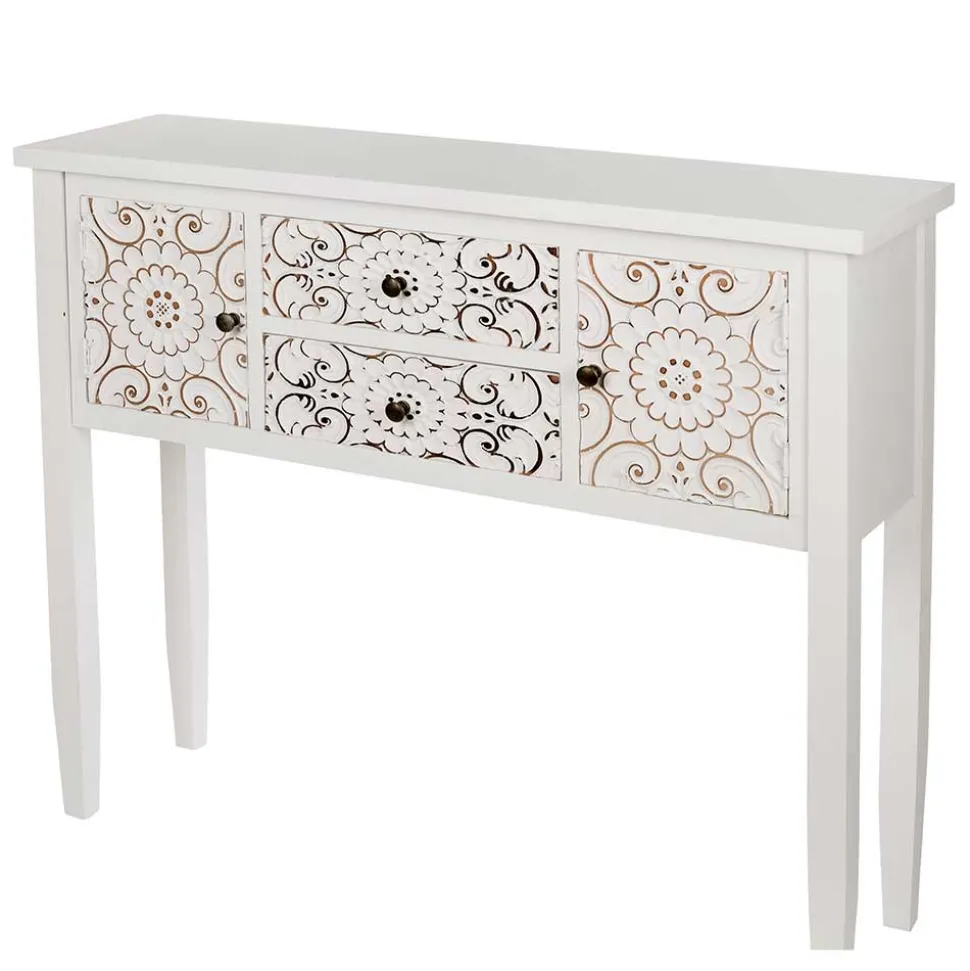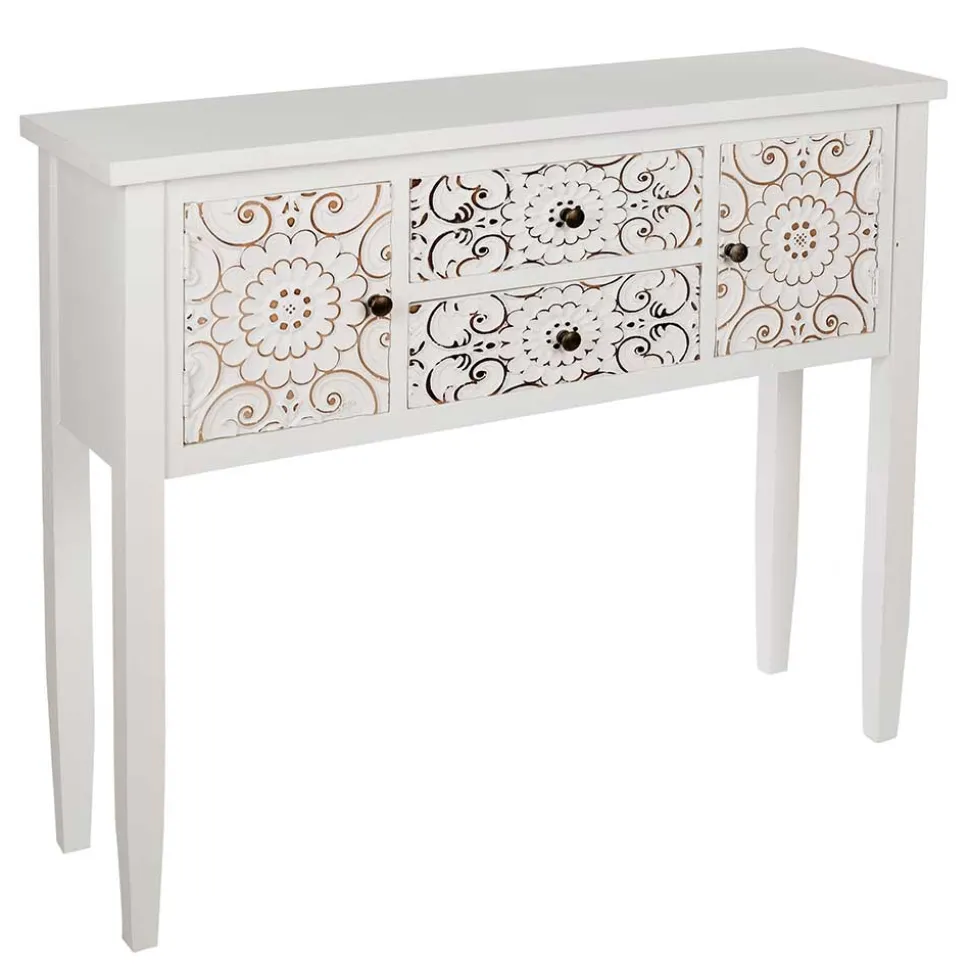 - Detailverliebte Konsole in Antikweiß und Goldfarben