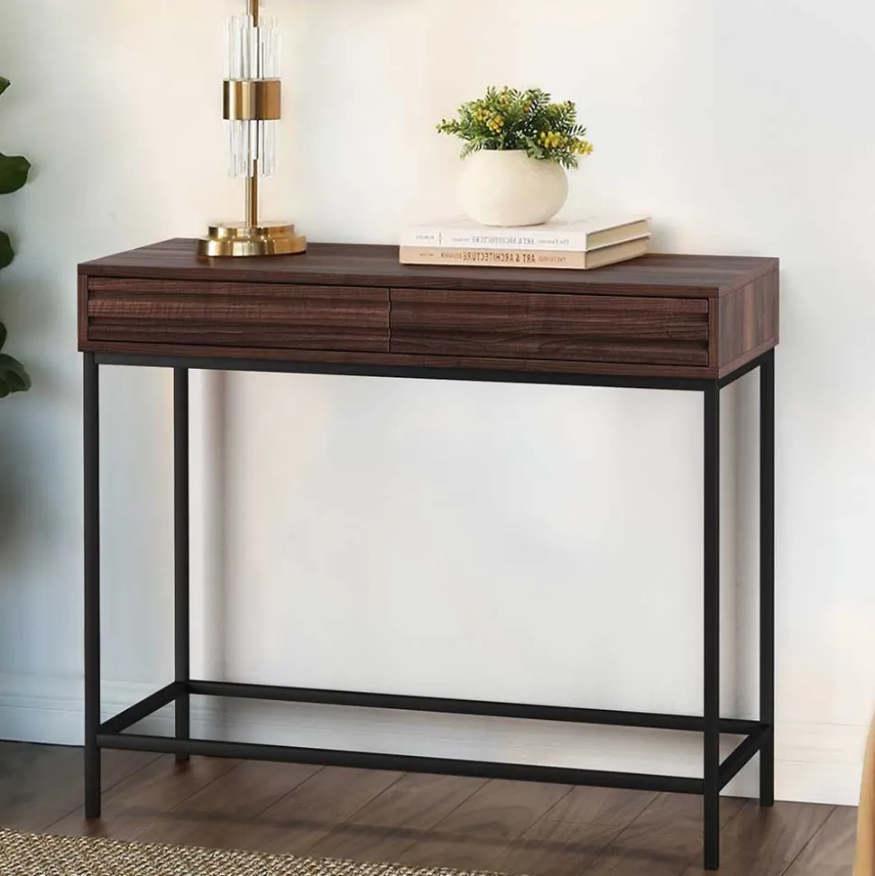 - Dezenter Konsolentisch in Walnussbraun und Schwarz