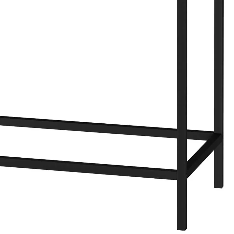 Der Tisch besteht aus einer Kombination robuster Materialien: Während die Fronten aus MDF gefertigt sind, sorgt der Korpus aus stabiler Spanplatte für eine solide Basis. Die folierten Oberflächen in Walnuss-Optik verleihen dem Möbelstück eine warme Ausstrahlung und sind zugleich pflegeleicht. Das filigrane Vierfußgestell aus schwarzem Metall verleiht dem Konsolentisch nicht nur einen modernen Touch, sondern sorgt auch für eine zuverlässige Standfestigkeit.
