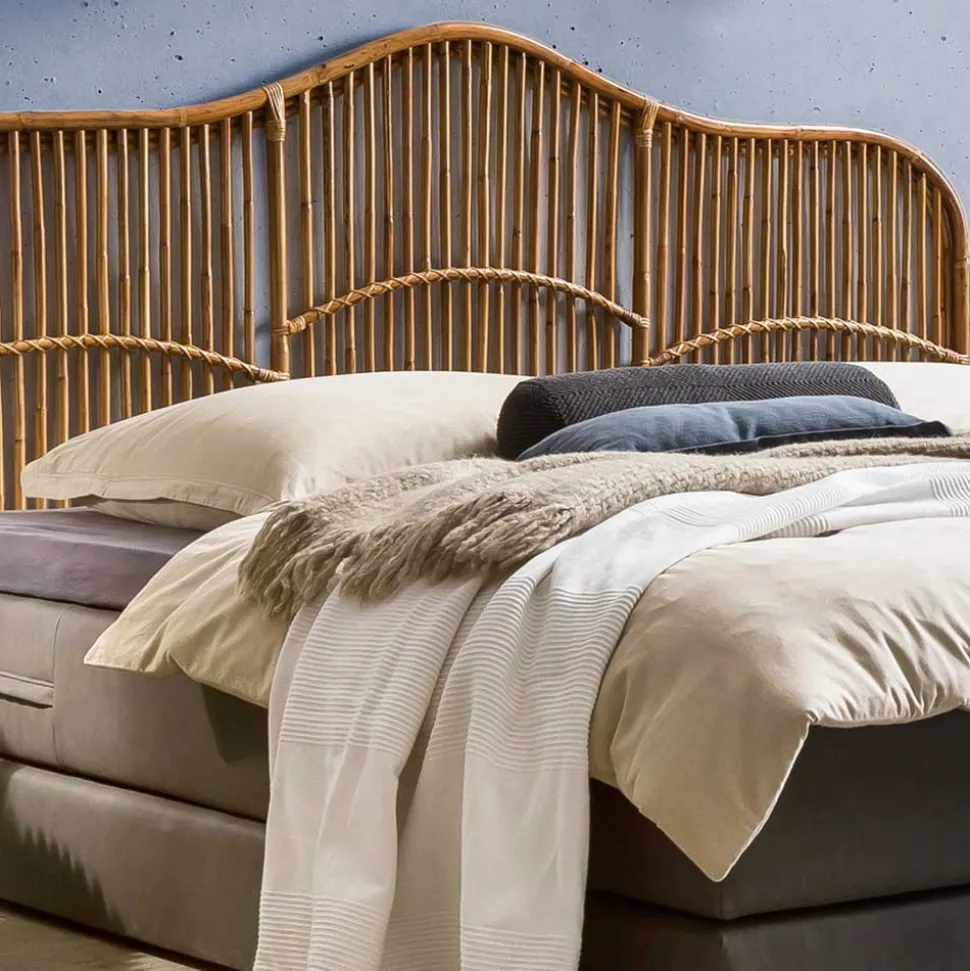 Hergestellt aus feinem Rattan, verkörpert das Kopfteil „Teako“ nicht nur erstklassige Handwerkskunst, sondern auch Nachhaltigkeit. Rattan ist bekannt für seine Robustheit und Langlebigkeit, und verleiht dem Kopfteil eine warme, natürliche Ausstrahlung. Dieses Naturmaterial bringt ein Stück Natur in Ihre vier Wände und sorgt für eine gemütliche Atmosphäre.