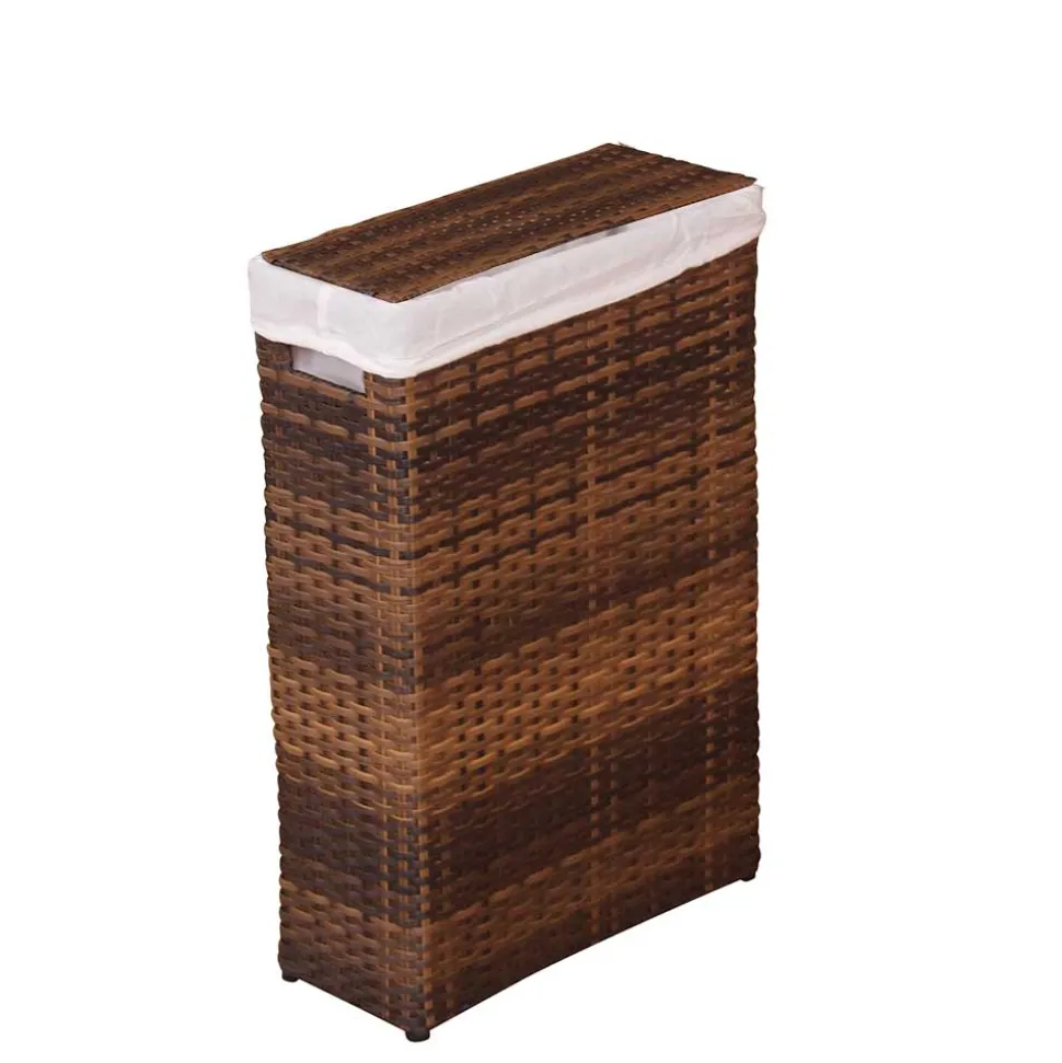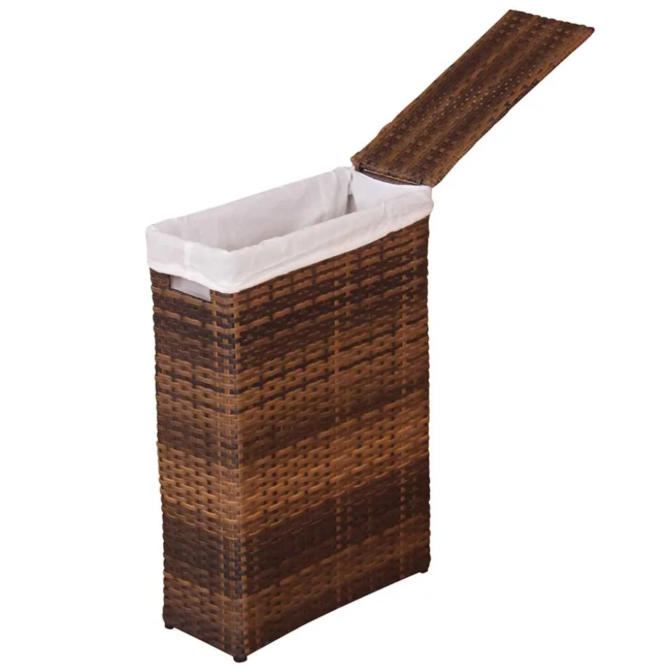 Der Wäschekorb „Lilis“ präsentiert sich als ebenso dekorative wie praktische Lösung zur Aufbewahrung von Schmutzwäsche. In edlem Braun gehalten und mit einem dezenten Deckel versehen, fügt sich dieses formschöne Modell nahtlos in moderne Wohn- und Badlandschaften ein – ideal auch für schmale Nischen.