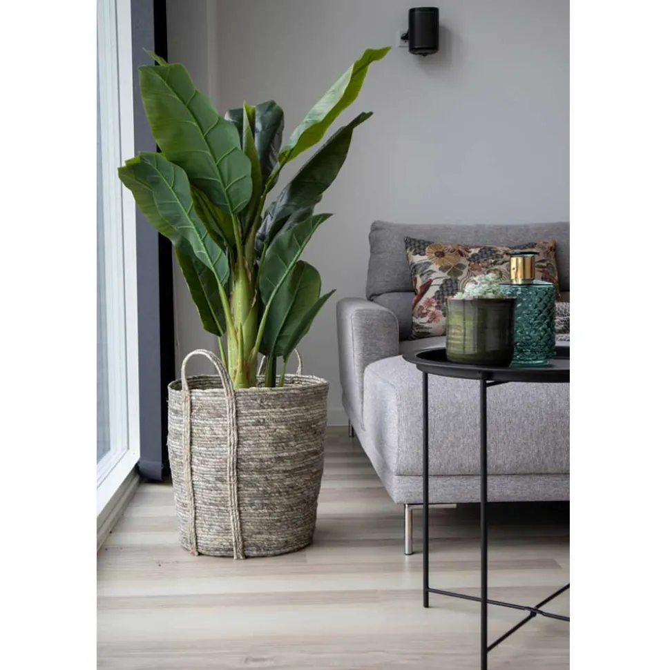 Der Korb „Future“ bringt mit seinem handgeflochtenen Design aus natürlichem Maisstroh einen Hauch von rustikaler Behaglichkeit in Ihre vier Wände. In sanftem Beige-Grau gehalten, fügt er sich harmonisch in moderne und skandinavisch inspirierte Einrichtungsstile ein.