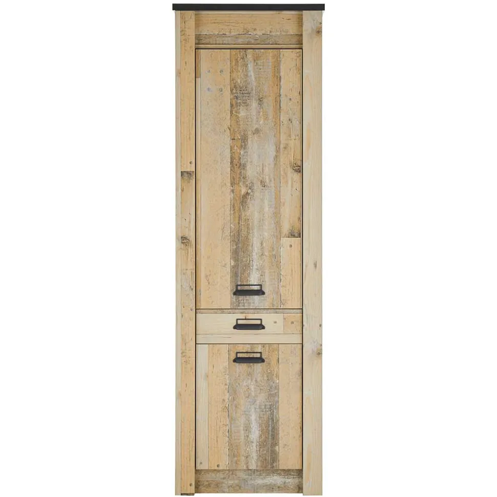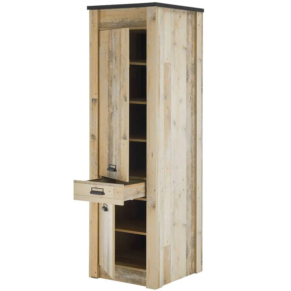 Der Hochschrank präsentiert sich in einer eindrucksvollen Altholz Optik, die durch eine subtile Verwitterung und elegante Anthrazit-Akzente veredelt wird. Gefertigt aus robustem Holzwerkstoff, überzeugt dieser Schrank nicht nur durch sein ansprechendes Aussehen, sondern auch durch seine herausragende Materialqualität.
