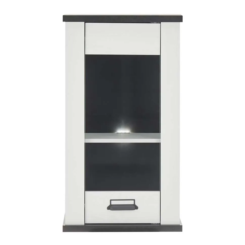 - Kompakter Küchen Hängeschrank in Pinie Weiß und Anthrazit