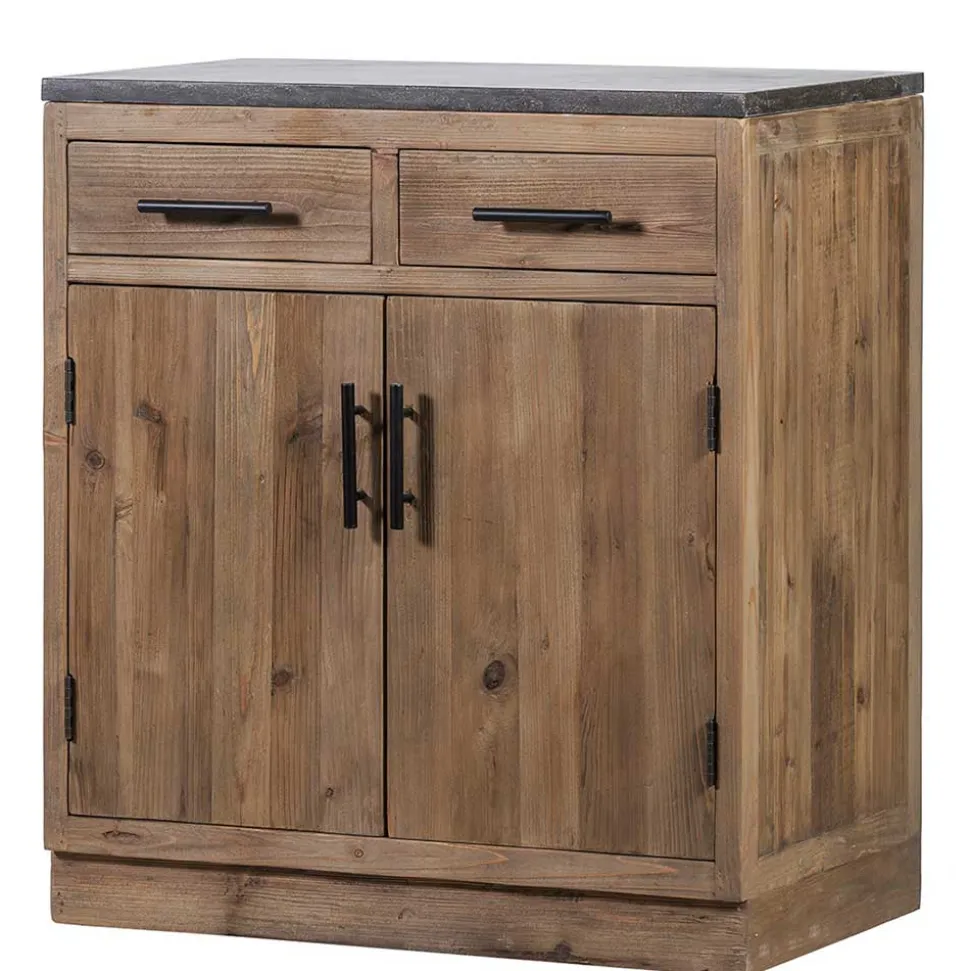 Mit einer Breite von 80 cm, einer Höhe von 90 cm und einer Tiefe von 59 cm bietet der „Macsena“ Küchenschrank viel Stauraum im Country Style. Die robuste Oberplatte aus hochwertigem Stein eignet sich perfekt zum Zubereiten von Speisen, während die zwei praktischen Schubladen mit Holzauszug zusätzlichen Platz für Besteck und Küchenutensilien bieten.