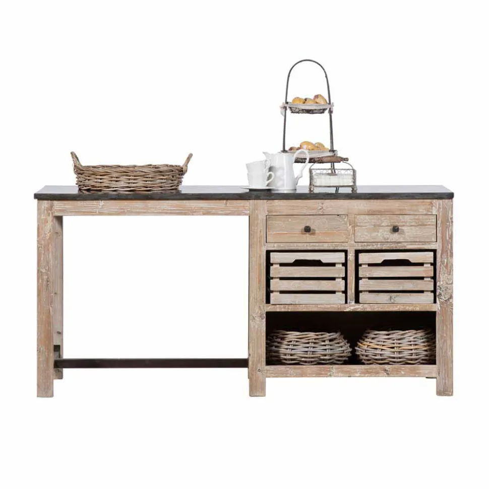 - Rustikaler Küchen Arbeitstisch in Piniefarben und Schwarzgrau