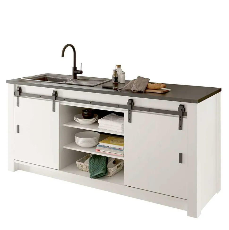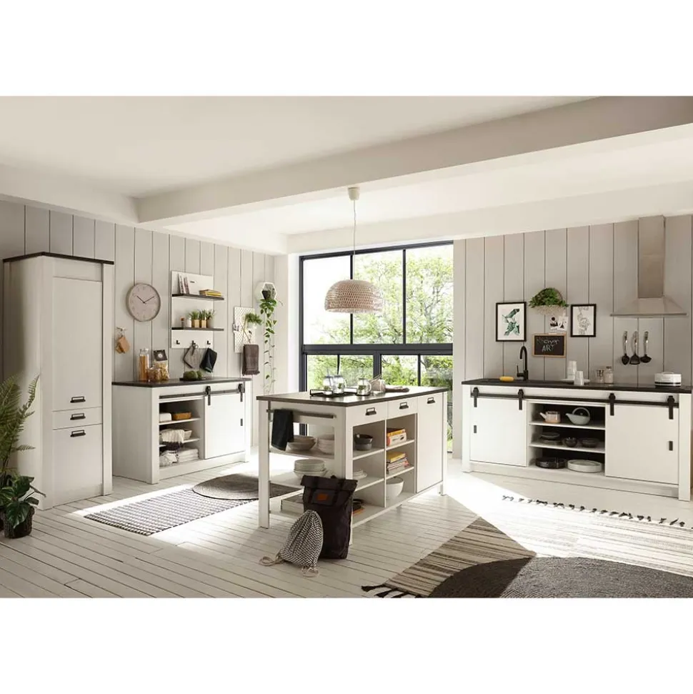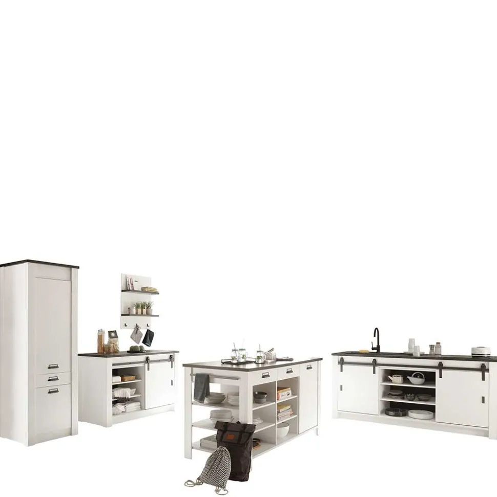- Moderne Küchenmöbel in Pinie Weiß und Anthrazit