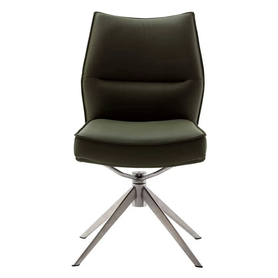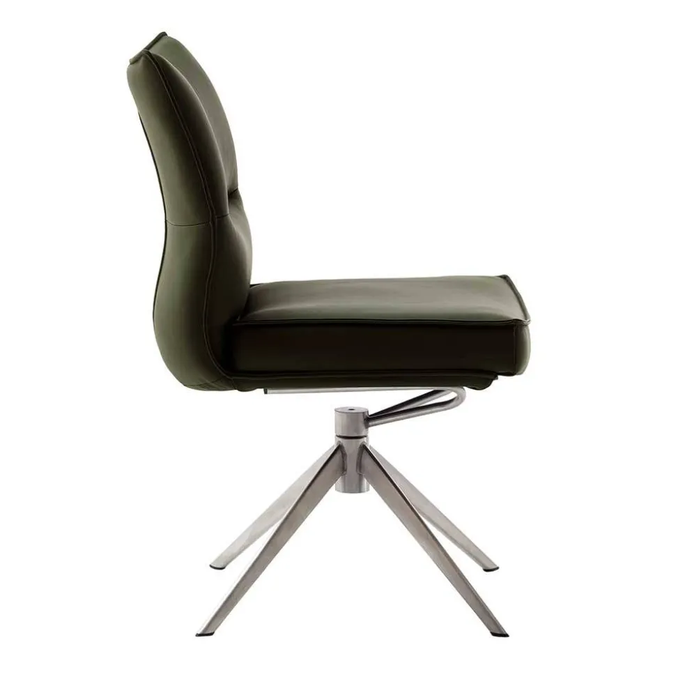 Stabilität und Design gehen bei „Simael“ Hand in Hand. Das Gestell aus gebürstetem Edelstahl mit vier leicht schräg verlaufenden Beinen bietet nicht nur eine hohe Belastbarkeit bis 120 kg, sondern unterstreicht auch die moderne Optik des Stuhls. Mit einer Breite von 49 cm und einer Bodenfreiheit von 39 cm verbindet das Gestell eine schlanke Silhouette mit zuverlässiger Standfestigkeit.