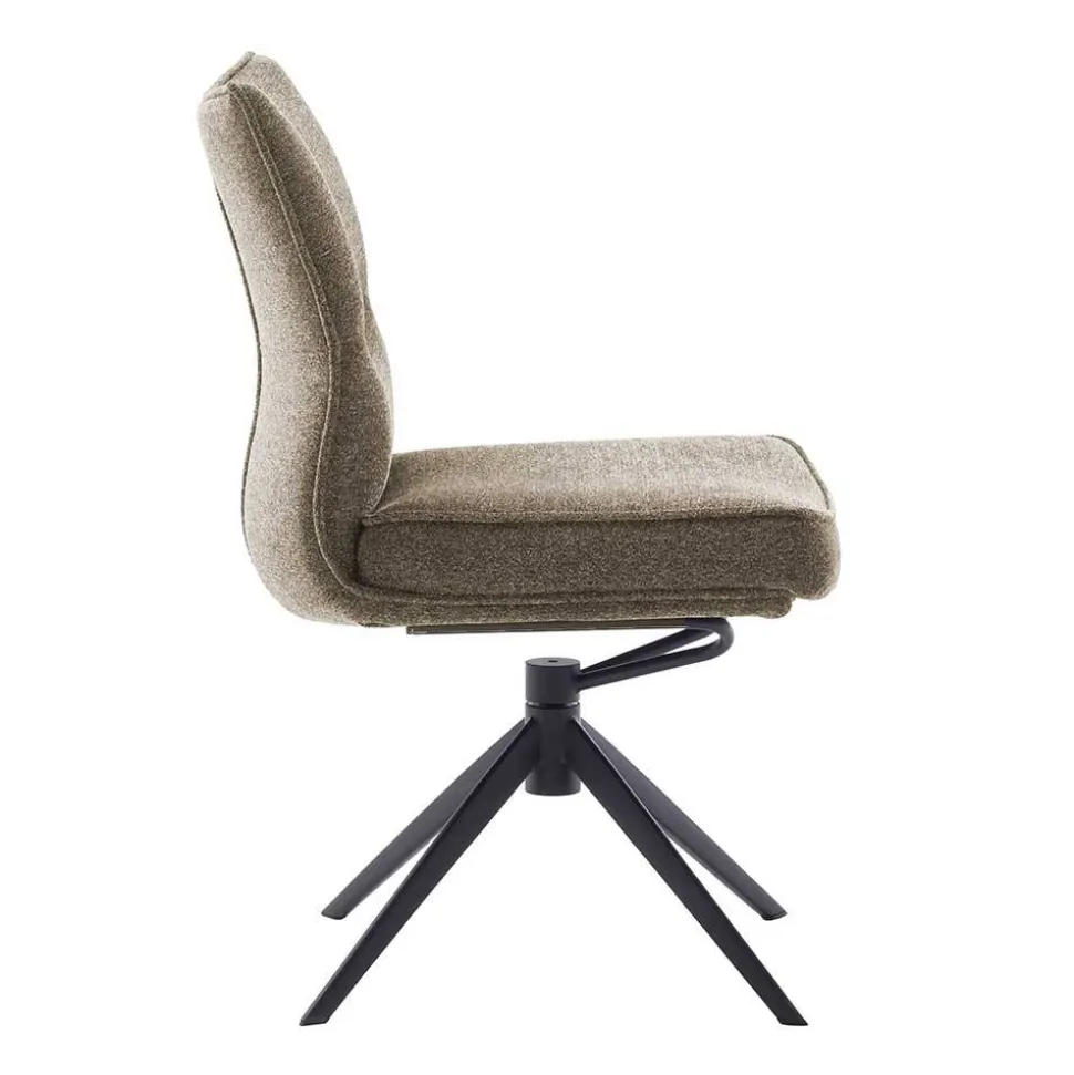 Der Küchenstuhl „Manore“ vereint zeitlose Eleganz mit durchdachter Funktionalität. Sein strukturierter Chenillegewebe-Bezug in Braun schafft eine warme Atmosphäre, während das mattschwarz lackierte Metallgestell mit Schwingfunktion für eine moderne Optik und zuverlässige Stabilität sorgt.