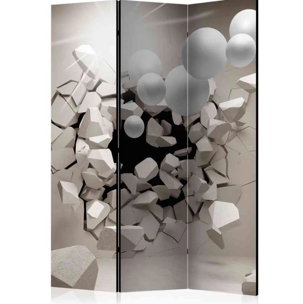 - Ansprechendes 3D-Motiv einer druchbrochenen Wand auf Vorder- und Rückseite