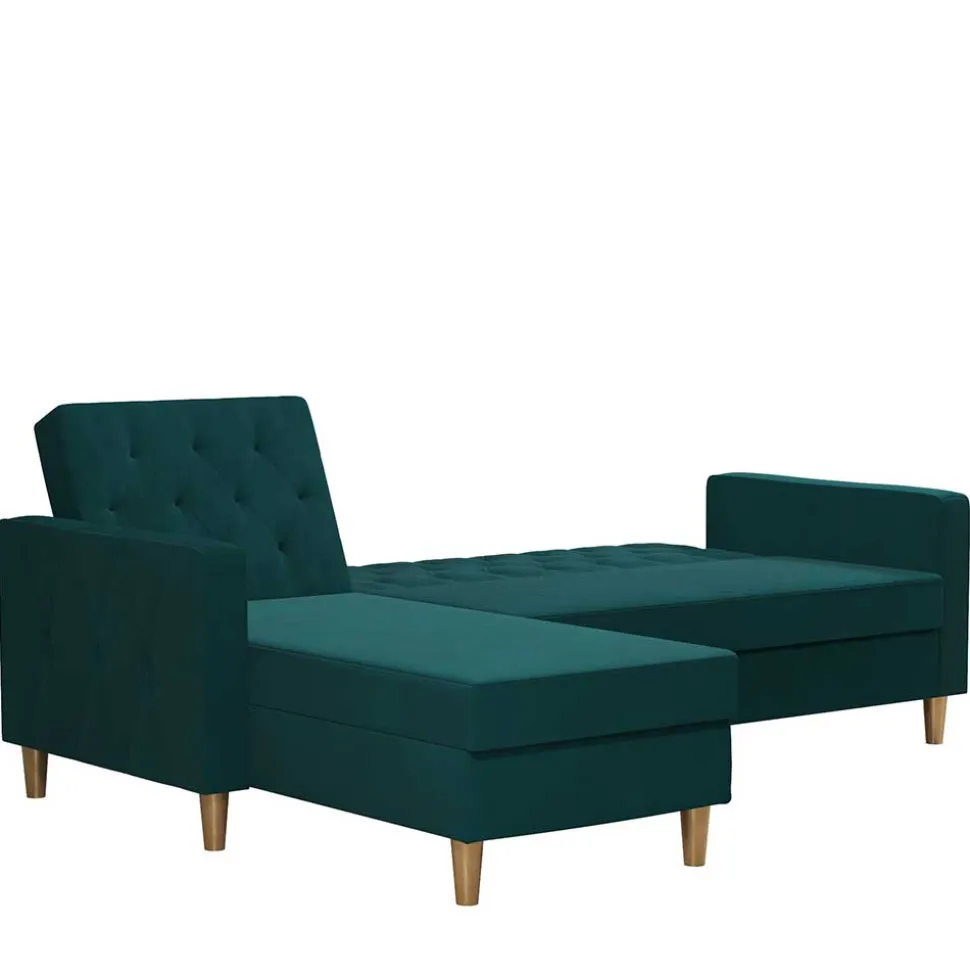 - Günstiges Eck-Schlafsofa in Petrol und Messingfarben