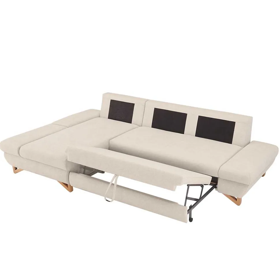 Ein exklusives Möbelstück für Liebhaber modernen Wohnens: Das L-Sofa „Baonga“ vereint stilvolles Skandi-Design mit praktischer Schlaffunktion. In Cremeweiß gehalten und mit Buchefarben akzentuiert, fügt es sich harmonisch in verschiedenste Einrichtungsstile ein.