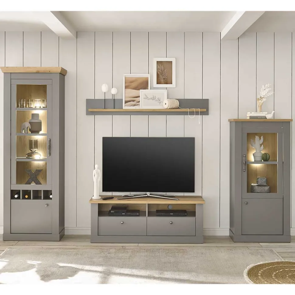 - Wunderschöne Wohnwand in Lichtgrau und Eichefarben