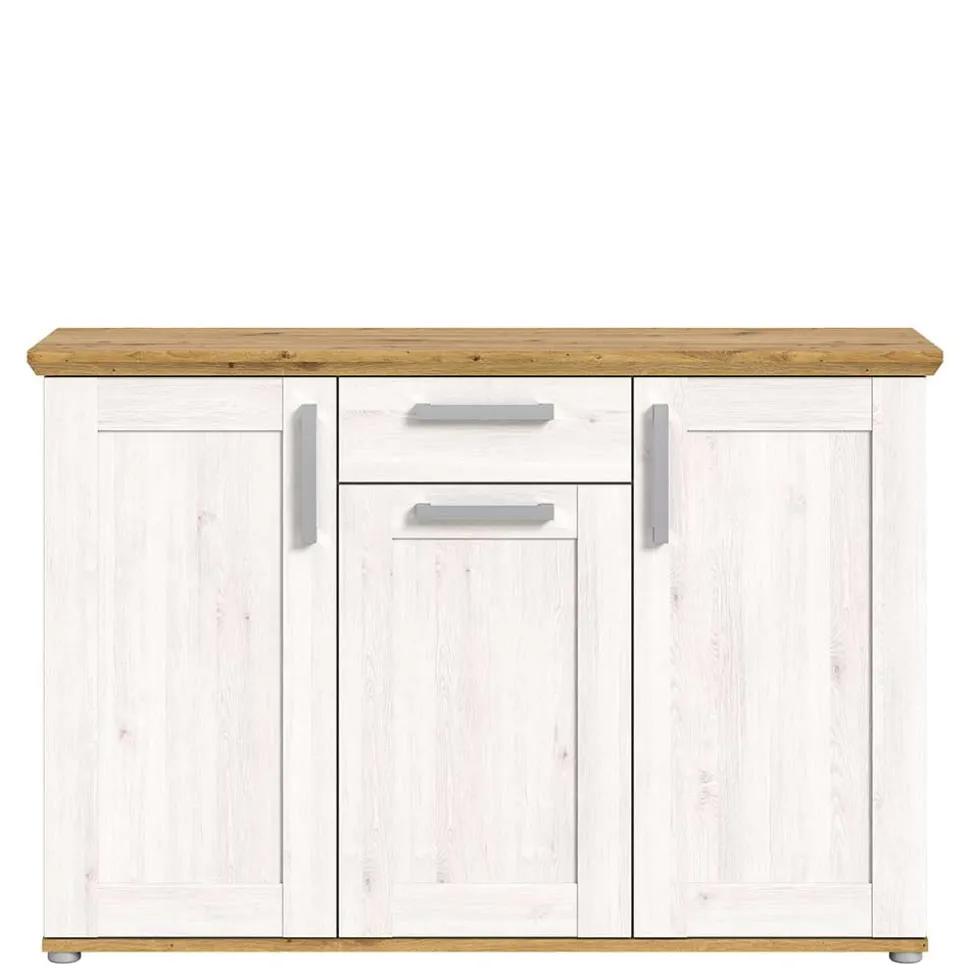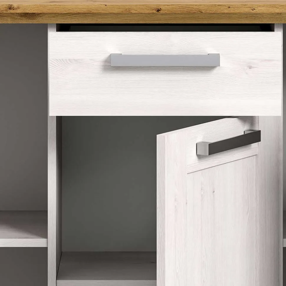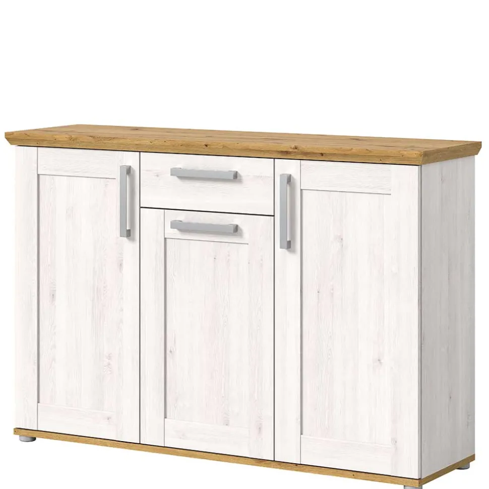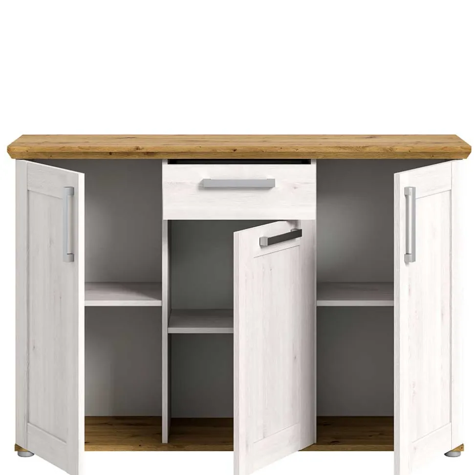 - Vielseitiges Sideboard in Weiß und Wildeichefarben