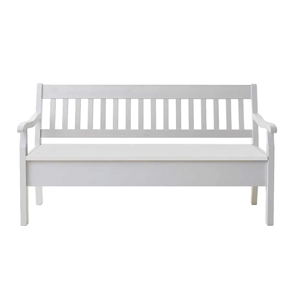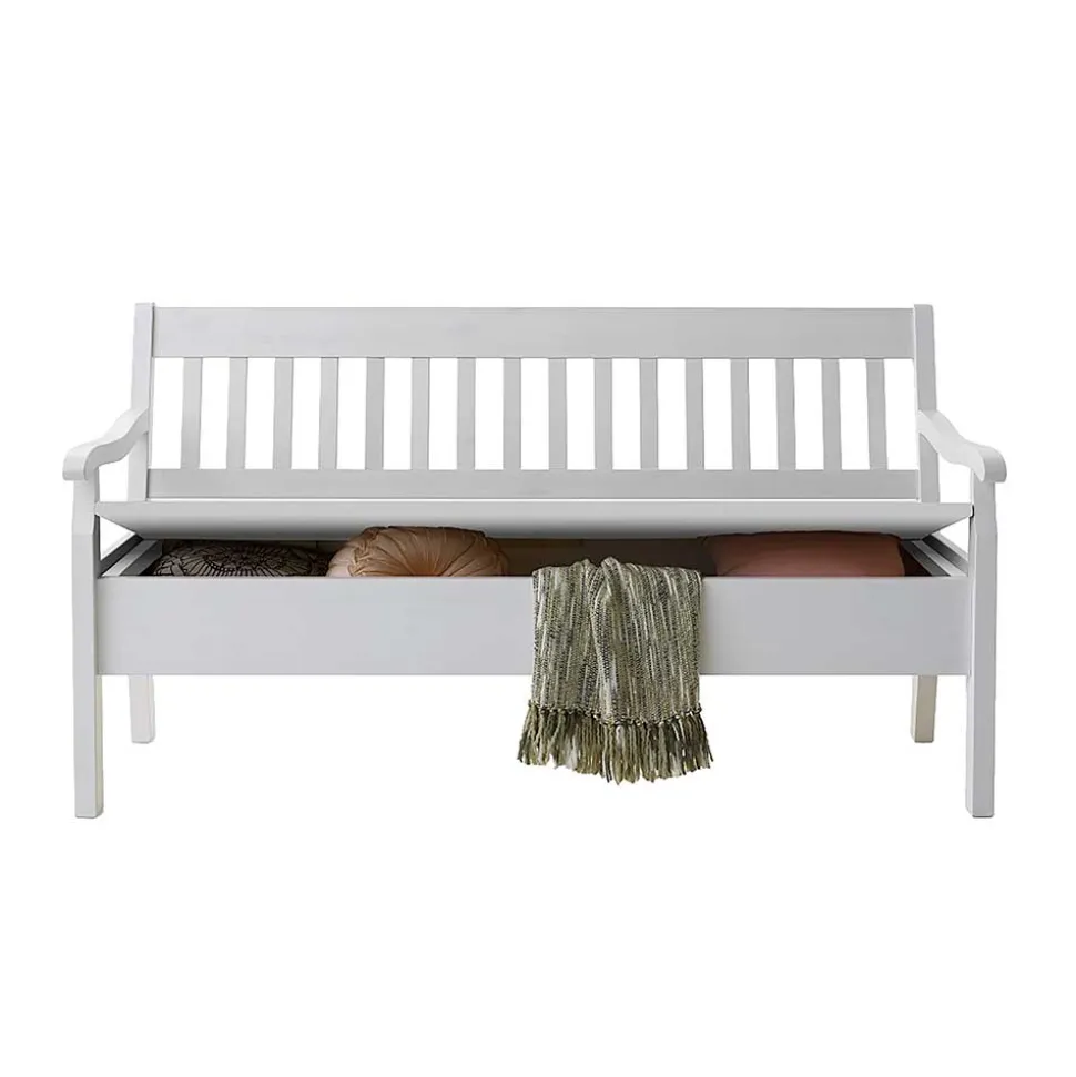 Unter der Sitzfläche verbirgt sich eine geräumige Truhe, die praktischen Stauraum für Kissen, Tischwäsche oder Alltagsgegenstände bietet. Ideal für Küche oder Esszimmer, sorgt diese clevere Lösung für Ordnung und ein aufgeräumtes Ambiente. Das stabile Vierfußgestell aus massiven Kanthölzern garantiert dabei eine Tragkraft von bis zu 200 kg und unterstreicht die hochwertige Verarbeitung dieser außergewöhnlichen Bank.