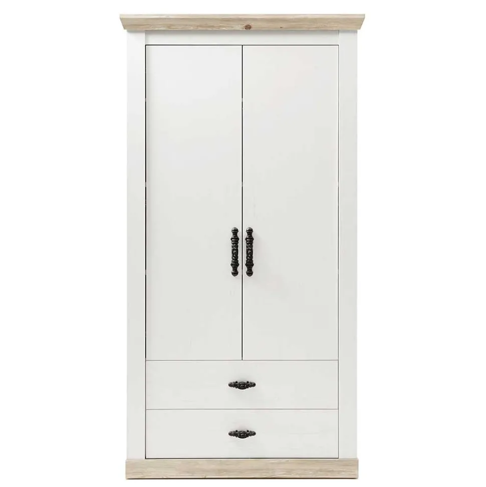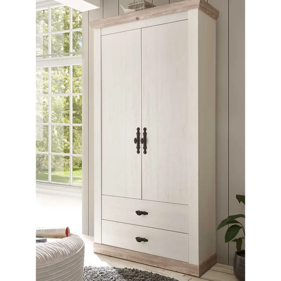 - Geräumiger Garderobenschrank in Weiß und Pinie verwittert