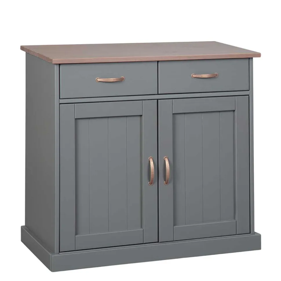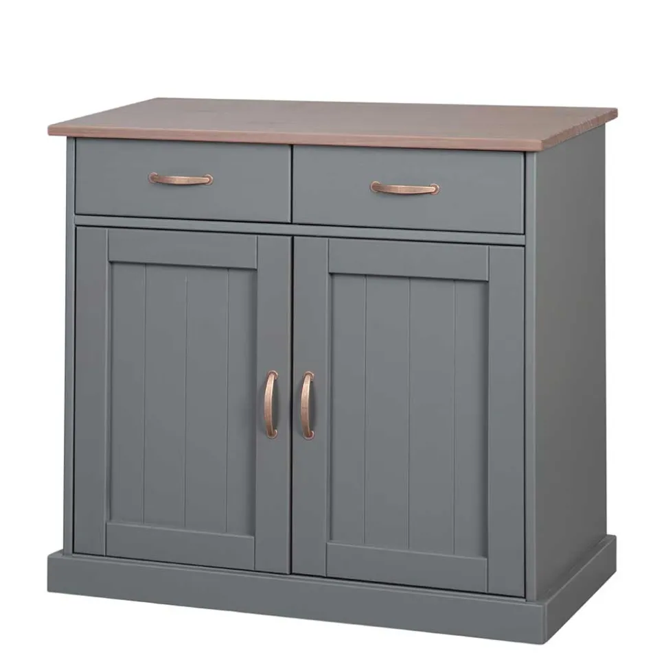 Die Oberflächen der Kommode sind in einem stilvollen Grau gehalten, während die Oberplatte sich in einem kontrastreichen Braun präsentiert. Diese Farbkombination verleiht der Kommode nicht nur einen modernen Touch, sondern auch eine Atmosphäre von Wärme und Gemütlichkeit. Die hochwertige Lackierung schützt das Holz nicht nur, sondern betont auch dessen natürliche Schönheit und sorgt für eine leichte Reinigung.