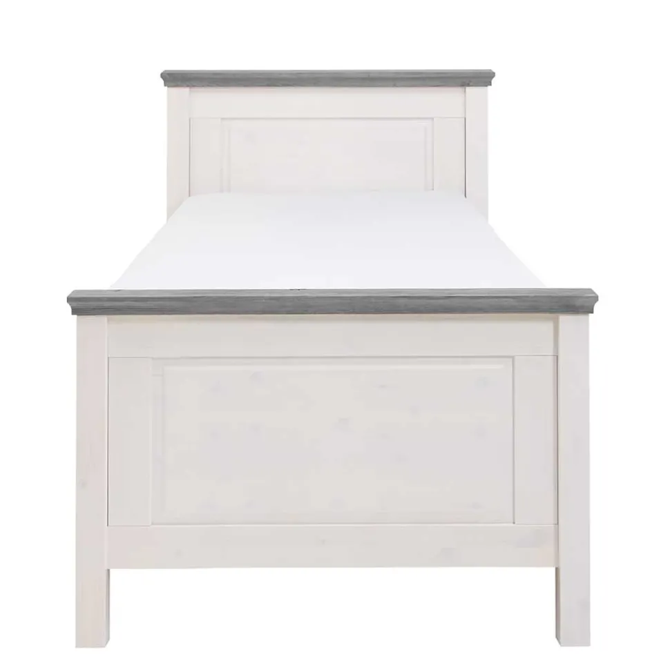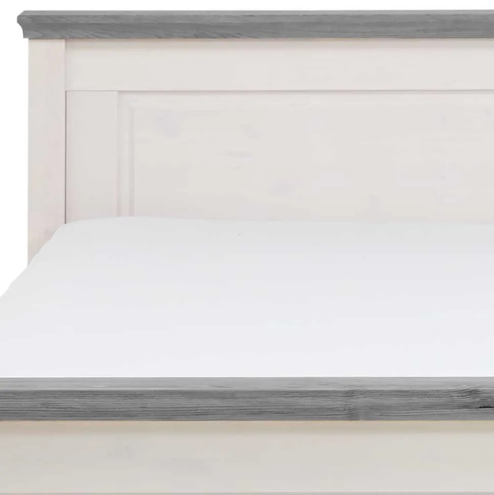 Kiefernholz ist nicht nur wegen seiner Strapazierfähigkeit und Langlebigkeit geschätzt, sondern auch für seine lebendige Maserung, die jedes Möbelstück einzigartig macht. Die Oberflächen von „Mirandesca“ sind sorgfältig in Weiß und Grau lackiert, was nicht nur das Holz schützt, sondern auch die natürliche Struktur sanft durchscheinen lässt. Diese Veredelung verleiht dem Bett eine moderne Note, während die Holztextur eine Verbindung zur Natur herstellt.