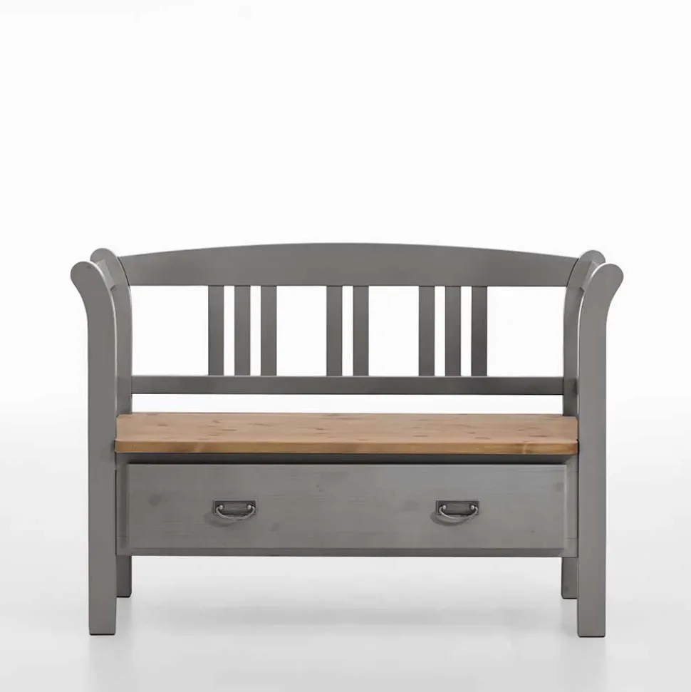 - Ländliche Bank in Grau und Kiefer laugenfarbig