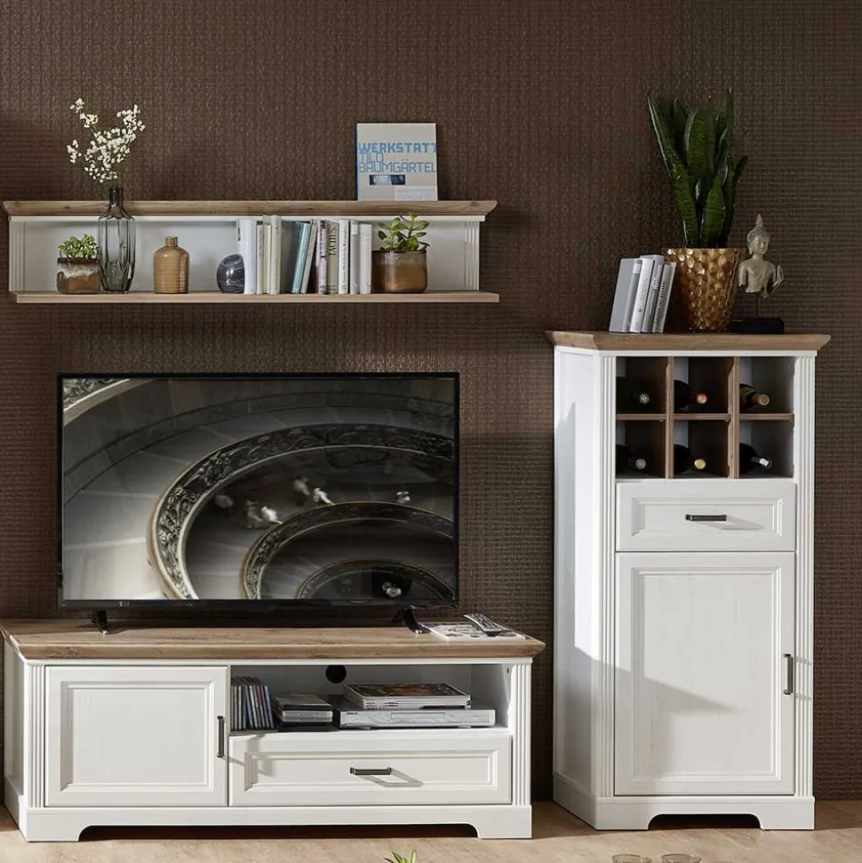 - Ansprechende Wohnwand in Pinie Weiß und Eichefarben