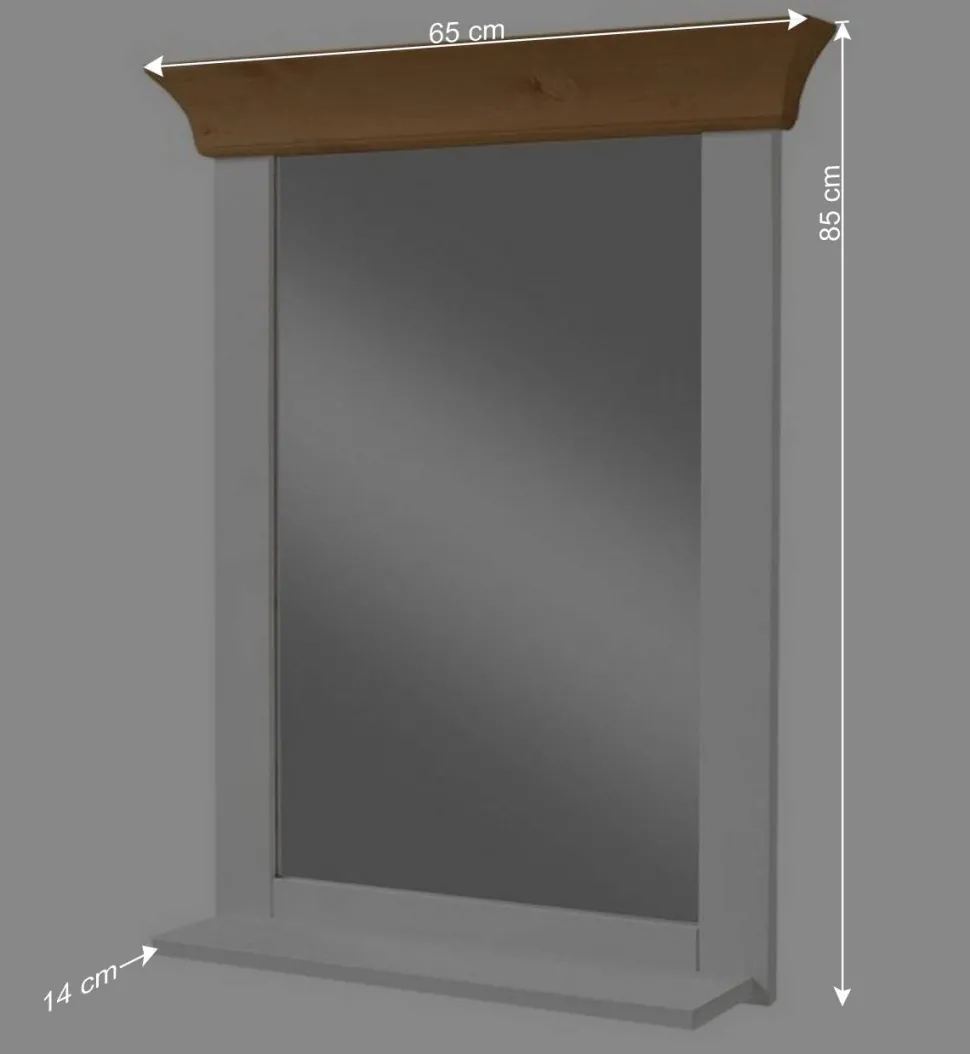 Mit den Maßen 65 cm Breite, 85 cm Höhe und 14 cm Tiefe bietet der Spiegel eine großzügige Spiegelfläche und passt dennoch in fast jeden Raum. Zeitlos in seinem Design, lässt er sich mühelos in verschiedene Einrichtungsstile integrieren. Die praktische Ablage am unteren Rand bietet zusätzlichen Stauraum für Ihre Badutensilien.