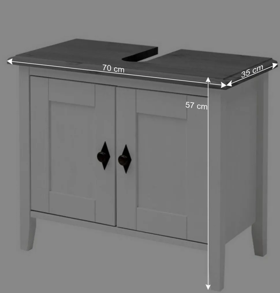 Der „Mirandesca“ Waschtischunterschrank bietet mit seinen Maßen von 70 cm Breite, 57 cm Höhe und 35 cm Tiefe reichlich Stauraum für Ihre Badezimmerutensilien. In der Deckplatte ist bereits ein vorgefertigter Siphonausschnitt vorhanden, der die Installation Ihres Waschbeckens erleichtert (Bitte beachten Sie, dass das Waschbecken nicht inklusive ist).