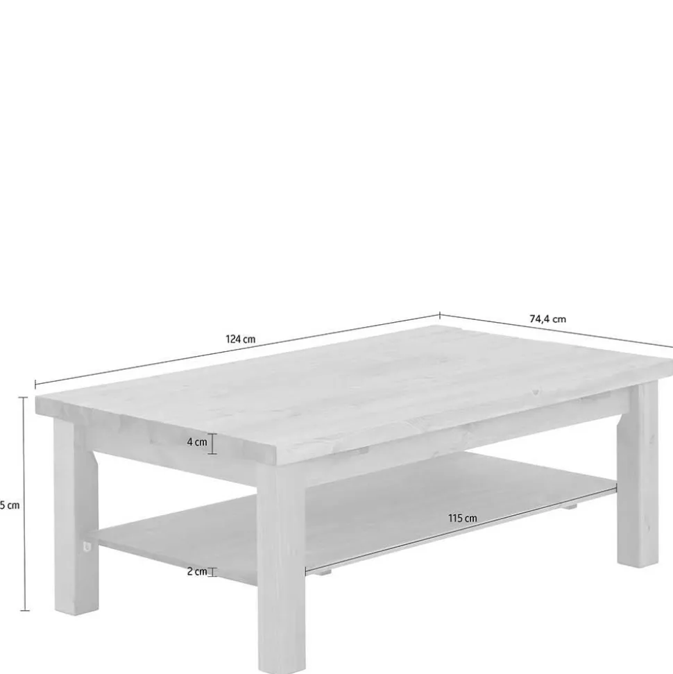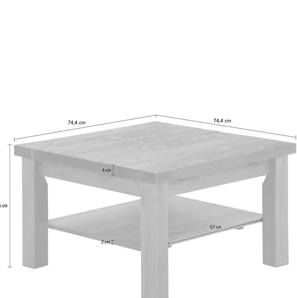 Unterhalb der soliden, ca. 4 cm starken Tischplatte befindet sich eine zusätzliche Ablagefläche – ideal für Zeitschriften, Fernbedienungen oder Dekorationsgegenstände. Das stabile Vierfußgestell garantiert eine hohe Standfestigkeit und unterstreicht das robuste Design.