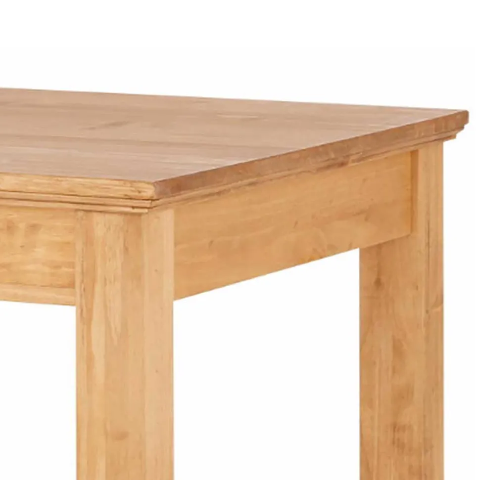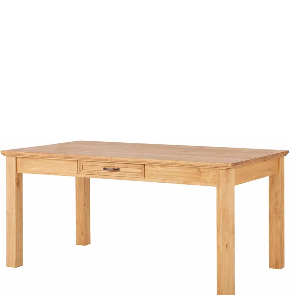 Gefertigt aus massivem Kiefernholz, überzeugt der Tisch durch seine robuste Verarbeitung und langlebige Qualität. Die gebeizten und geölten Oberflächen sind nicht nur pflegeleicht, sondern betonen die natürliche Holzstruktur und verleihen dem Tisch eine besondere Note. Die stabile Tischplatte mit einer gefrästen Kante fügt sich perfekt in das traditionelle Design ein und bietet viel Platz für Mahlzeiten oder gesellige Abende.