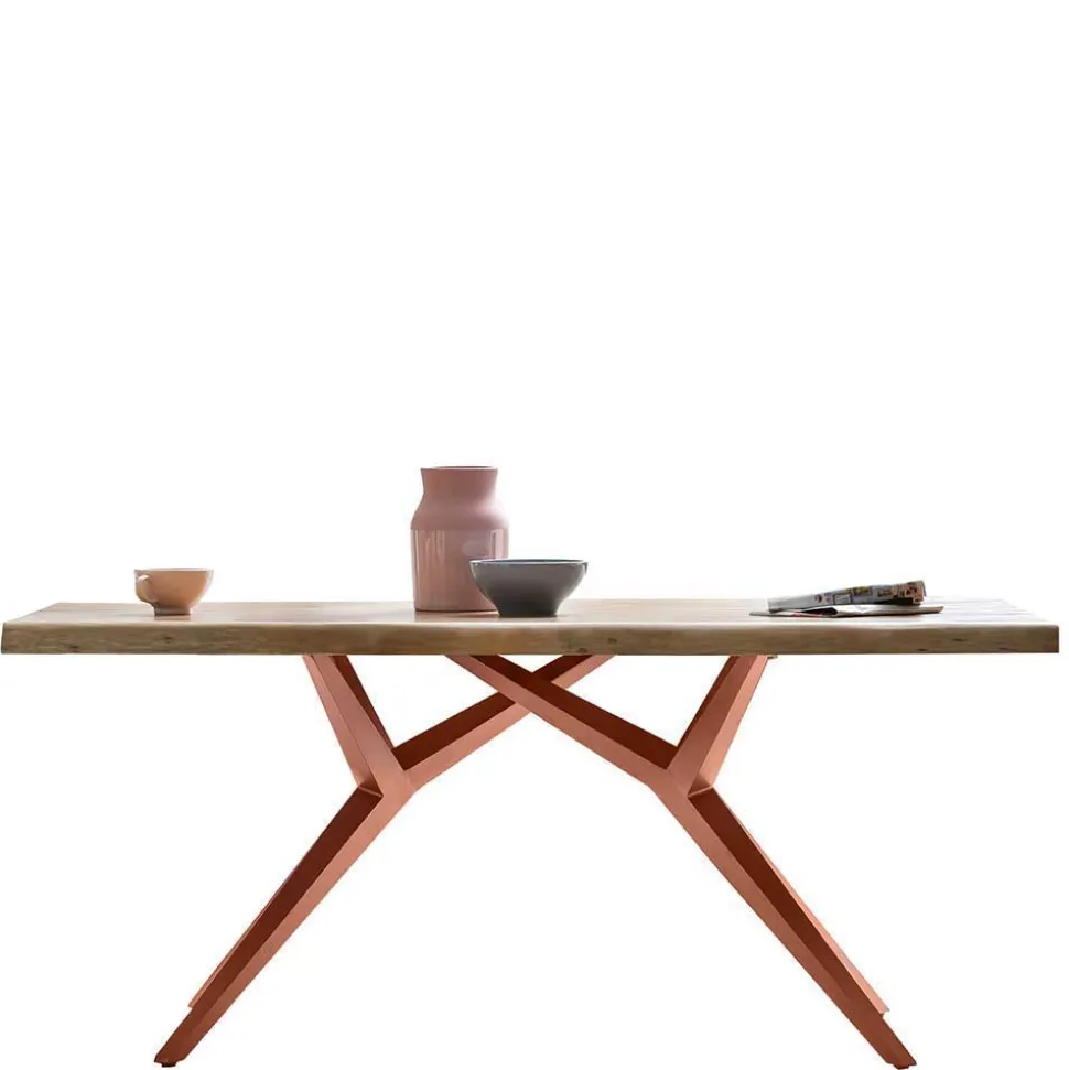 Betreten Sie die Welt exquisiter Wohnkultur mit dem Esstisch „Cemza“, der nicht nur ein Möbelstück, sondern ein Statement modernen Designs und handwerklicher Meisterleistung darstellt. Gefertigt aus dem edlen Mangobaumholz und stabilisiert durch ein antikbraunes Metall-Vierfußgestell, verkörpert dieser Tisch eine Symbiose aus natürlicher Schönheit und industriellem Charme.