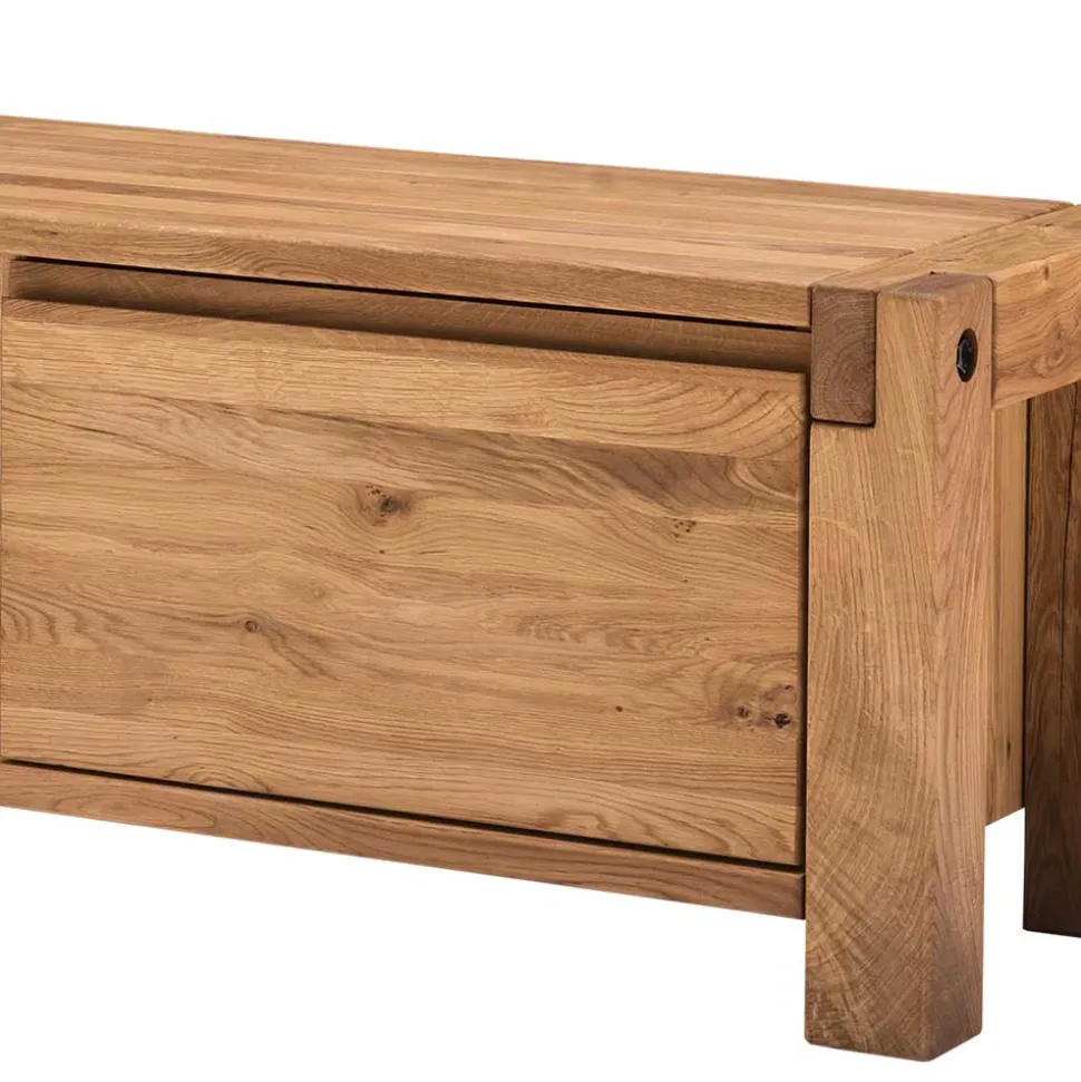 Gefertigt aus massivem Balkeneichenholz, verspricht dieses TV-Board eine Langlebigkeit, die ihresgleichen sucht. Balkeneiche zeichnet sich durch seine besondere Robustheit und Widerstandsfähigkeit aus. Astlöcher und Wuchsrisse sind bei dieser Holzart keine Fehler, sondern authentische Merkmale, die jedem Stück eine einzigartige Charakteristik verleihen. Die Farb- und Strukturdifferenzen zwischen den Möbelstücken machen dein TV-Board zu einem Unikat. Du holst dir ein Stück Natur direkt in dein Wohnzimmer!
