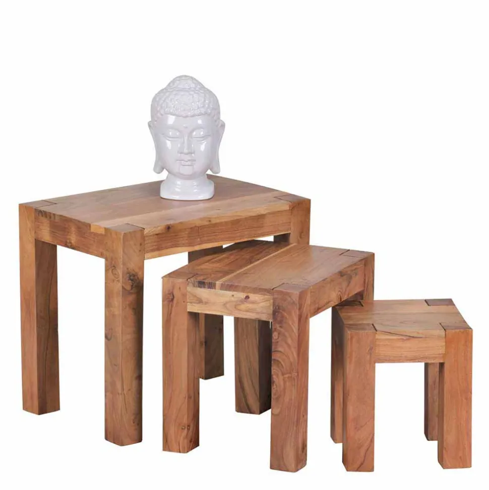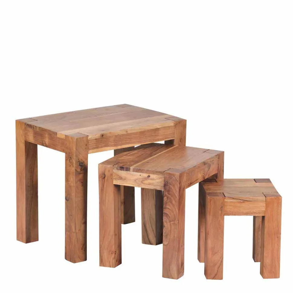 - Ansprechender 3-Satztisch in Akaziefarben