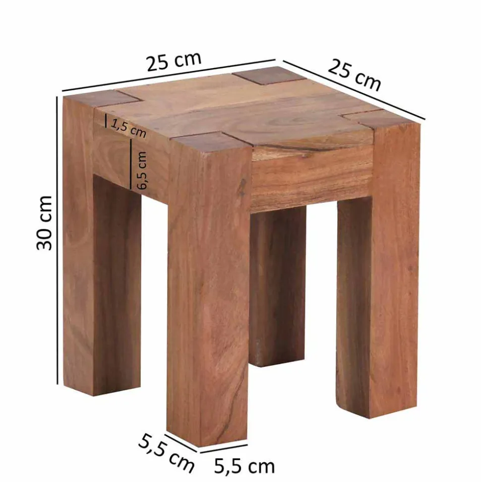Akazienholz zählt zu den härtesten und langlebigsten Hölzern überhaupt. Die dichte Struktur des Holzes macht es besonders widerstandsfähig gegenüber Kratzern, Druckstellen und anderen Beanspruchungen des Alltags. Möbel aus Akazie behalten ihre Form, sind stabil und gleichzeitig elastisch. Besonders hervorzuheben ist auch die Nachhaltigkeit dieses Rohstoffs: Akazien wachsen schnell nach und stellen damit eine umweltbewusste Alternative zu vielen Tropenhölzern dar. Bei diesem Beistelltisch kommt ausschließlich massives Akazienholz zum Einsatz – für eine Qualität, die man sieht und fühlt.
