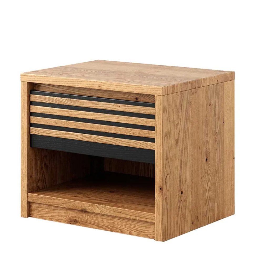 - Klasse Nachtkommode in Eichefarben und Schwarz