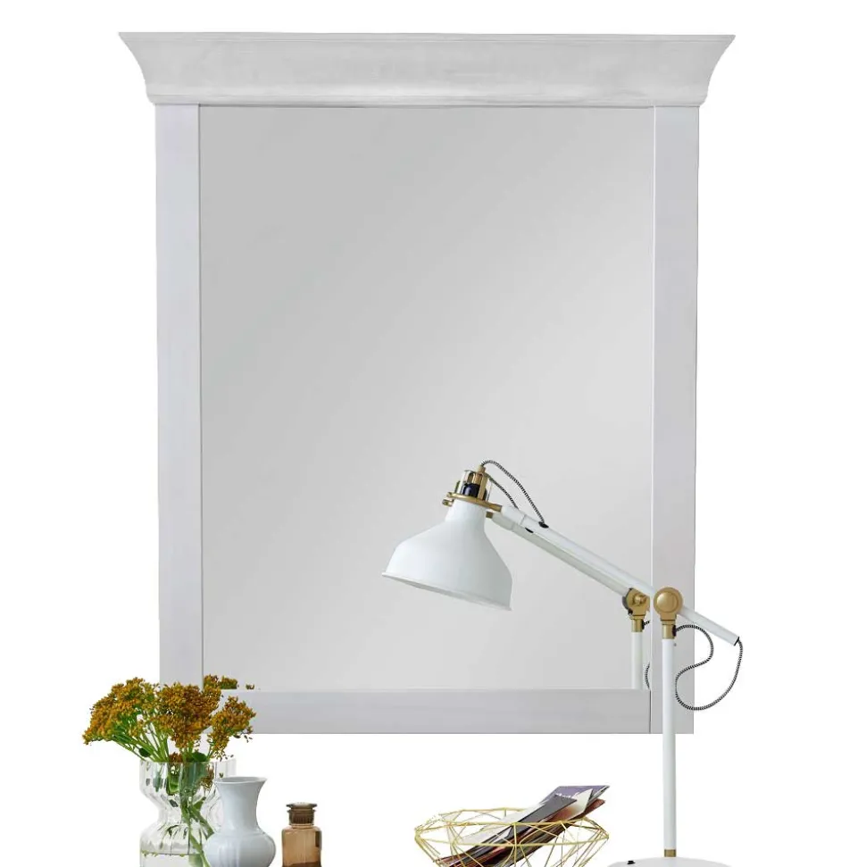 Gefertigt wurde der Rahmen dieses Spiegels aus massivem Kiefernholz – ein Material, das nicht nur für seine Stabilität und Widerstandskraft bekannt ist, sondern auch durch seine warme Ausstrahlung begeistert. Kiefernholz überzeugt mit einer angenehmen Haptik, seiner lebendigen Maserung und seiner natürlichen Optik. Jeder Spiegelrahmen ist ein Unikat, denn die feinen Äste und Strukturen des Holzes bleiben trotz der weißen Lackierung sichtbar und verleihen dem Möbelstück eine individuelle Note. Der matte Weißton wirkt frisch und leicht, ohne dabei die natürliche Schönheit des Holzes zu überdecken.