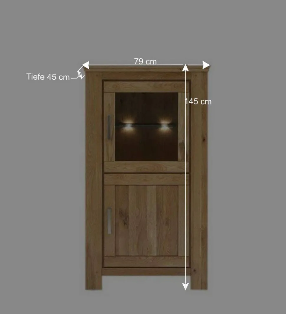 Die Vitrine „Ladressa“ ist aus robustem Massivholz Wildeiche gefertigt, was ihr nicht nur eine beeindruckende Haltbarkeit verleiht, sondern auch ihre natürliche Schönheit hervorhebt. Wildeiche zeichnet sich durch ihre charakteristische Maserung und warme Farbgebung aus, die jedem Raum eine gemütliche Atmosphäre verleiht.