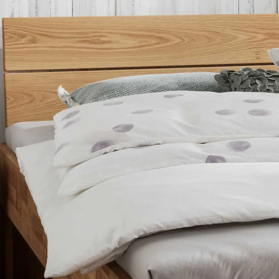 Das verwendete Wildeichenholz trägt nicht nur optisch zur Aufwertung Ihres Schlafzimmers bei, sondern verbessert dank seiner natürlichen Eigenschaften auch das Raumklima. Holz reguliert die Feuchtigkeit und sorgt so für ein angenehmes, gesundes Schlafumfeld. Die geölte Oberfläche verstärkt die natürliche Struktur des Holzes und schützt es vor Abnutzung – ohne dabei auf chemische Lacke zurückzugreifen. Dadurch bleibt die natürliche Schönheit des Holzes erhalten, und das Bett strahlt eine warme, einladende Atmosphäre aus.