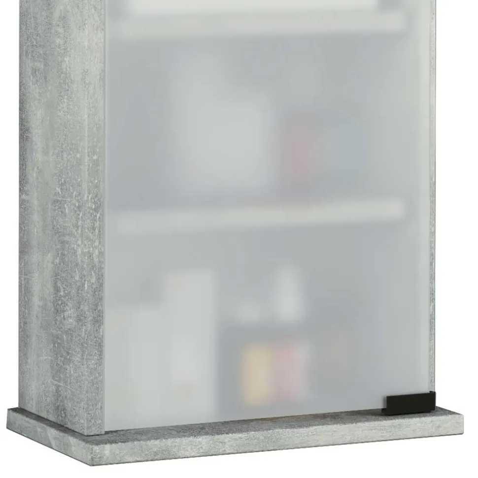 Der Medizinschrank „Woba“ zeichnet sich durch seine hervorragende Qualität und Verarbeitung aus. Die melaminbeschichtete Holzwerkstoffoberfläche in Beton Optik ist nicht nur widerstandsfähig gegen Kratzer und Abnutzung, sondern auch gegen Feuchtigkeit und Hitze. Dies macht den Schrank besonders langlebig und pflegeleicht – ideal für die Aufbewahrung von Medikamenten. Die milchig weiße Glastür, versehen mit langlebigen Metallbeschlägen und einem stilvollen Kreuzmotiv, rundet das moderne Design ab und ermöglicht einen diskreten Einblick in den Inhalt.