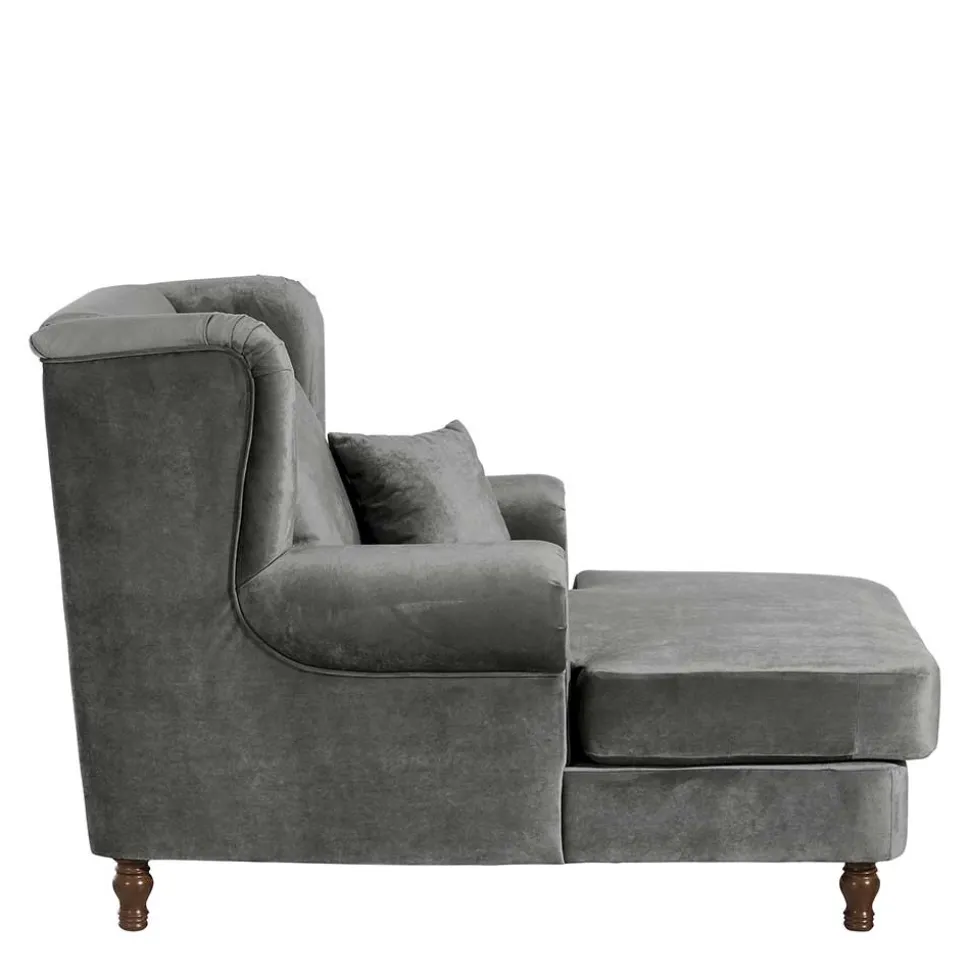 Der strapazierfähige Samtvelours-Bezug in elegantem Grau verleiht dem Sessel eine edle Note. Samtvelours ist bekannt für seine weiche Oberfläche und den luxuriösen Glanz, der jede Berührung zu einem sinnlichen Erlebnis macht. Mit einer Strapazierfähigkeit von 100.000 Scheuertouren nach Martindale und einer Lichtechtheit von 4 ist dieser Bezug ideal für den täglichen Gebrauch und behält seine Farbechtheit auch bei Lichteinwirkung.