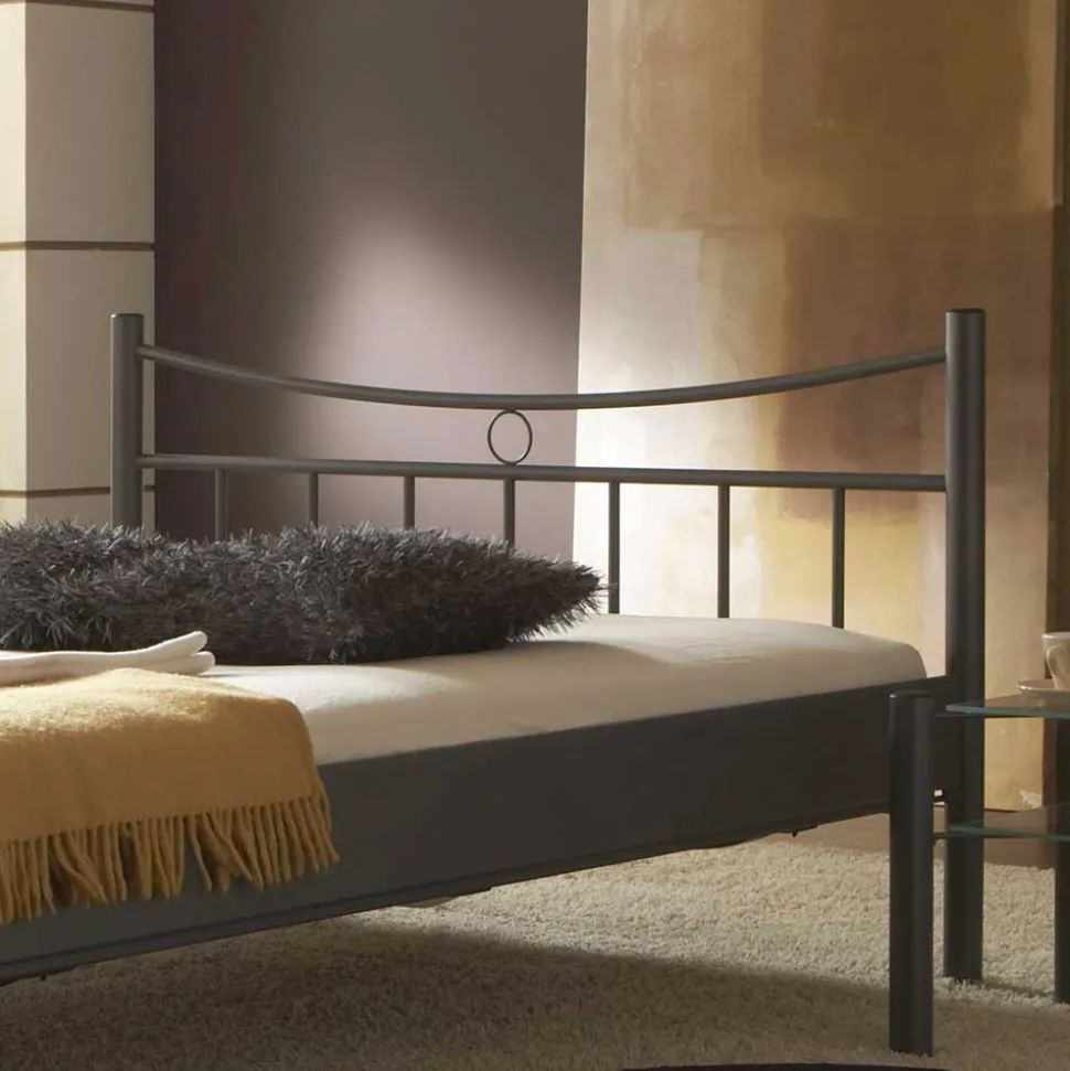 „Rosanna“ besticht durch ein modernes Design, das Eleganz und Funktionalität nahtlos miteinander verbindet. Das Bettgestell aus Metall, pulverbeschichtet in einem tiefen Dunkelgrau, verspricht nicht nur eine kratzfeste Oberfläche, sondern setzt auch ein markantes visuelles Statement in Ihrem Schlafraum. Die erstklassige Qualität und sorgfältige Verarbeitung garantieren eine lange Lebensdauer und machen „Rosanna“ zum Mittelpunkt des Raumes.