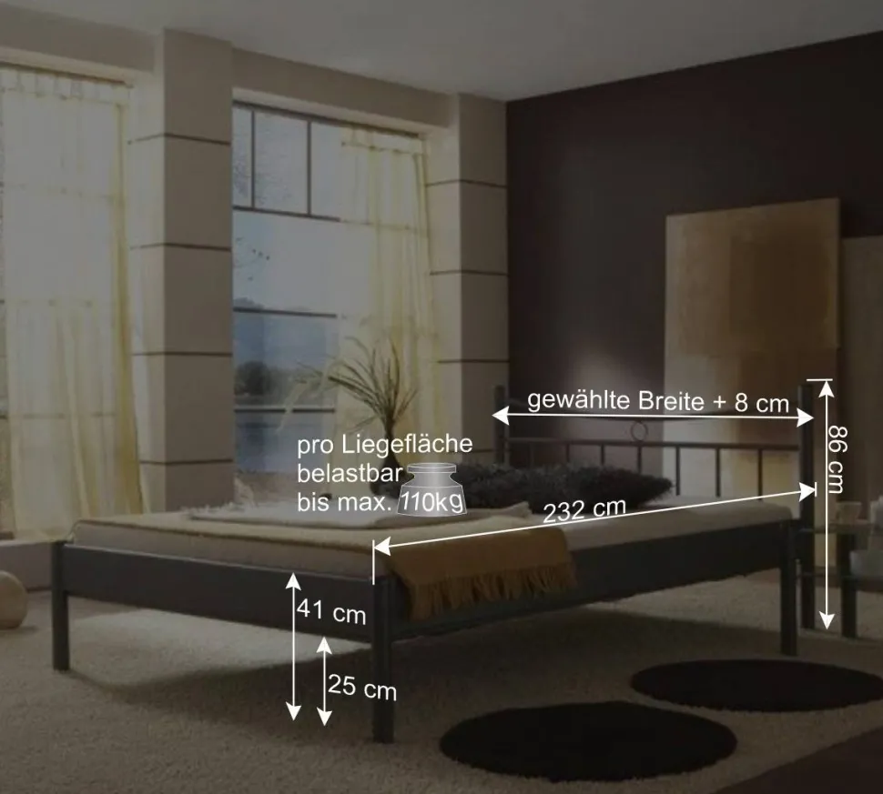 In jeder Nacht, in jedem Traum, ein Ort der Ruhe und Schönheit – das Metallbett „Rebeca“ verwandelt Ihr Schlafzimmer in eine Oase der Entspannung. Mit seinem modernen Design und der unverwüstlichen Qualität ist dieses Bett nicht nur ein Möbelstück, sondern ein Versprechen für endlose Nächte voller Erholung und Eleganz.