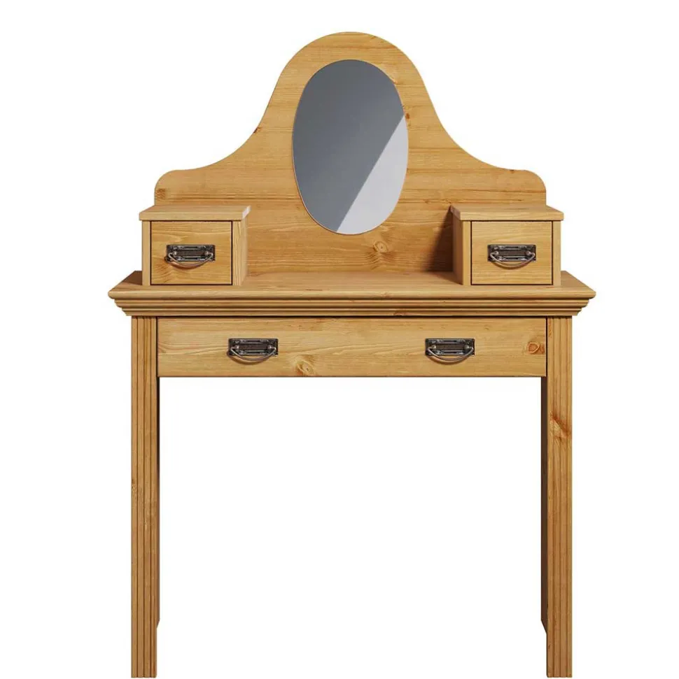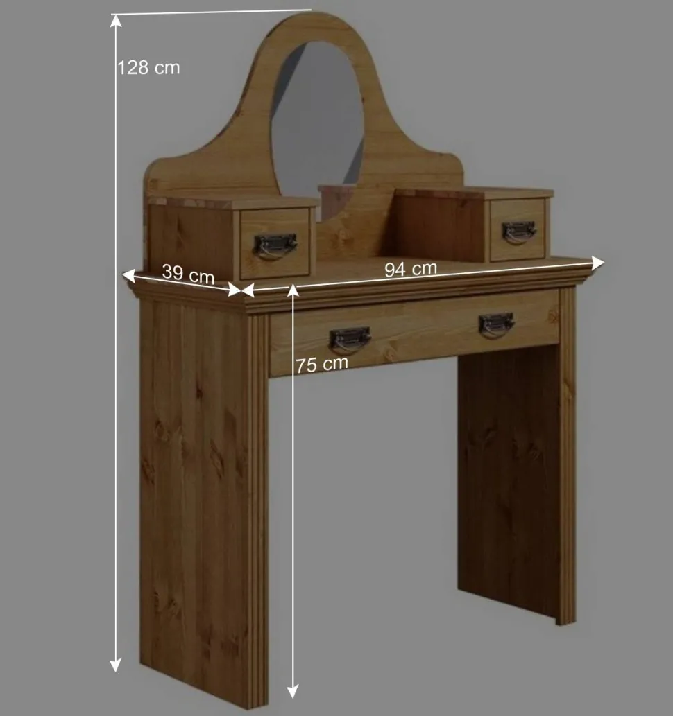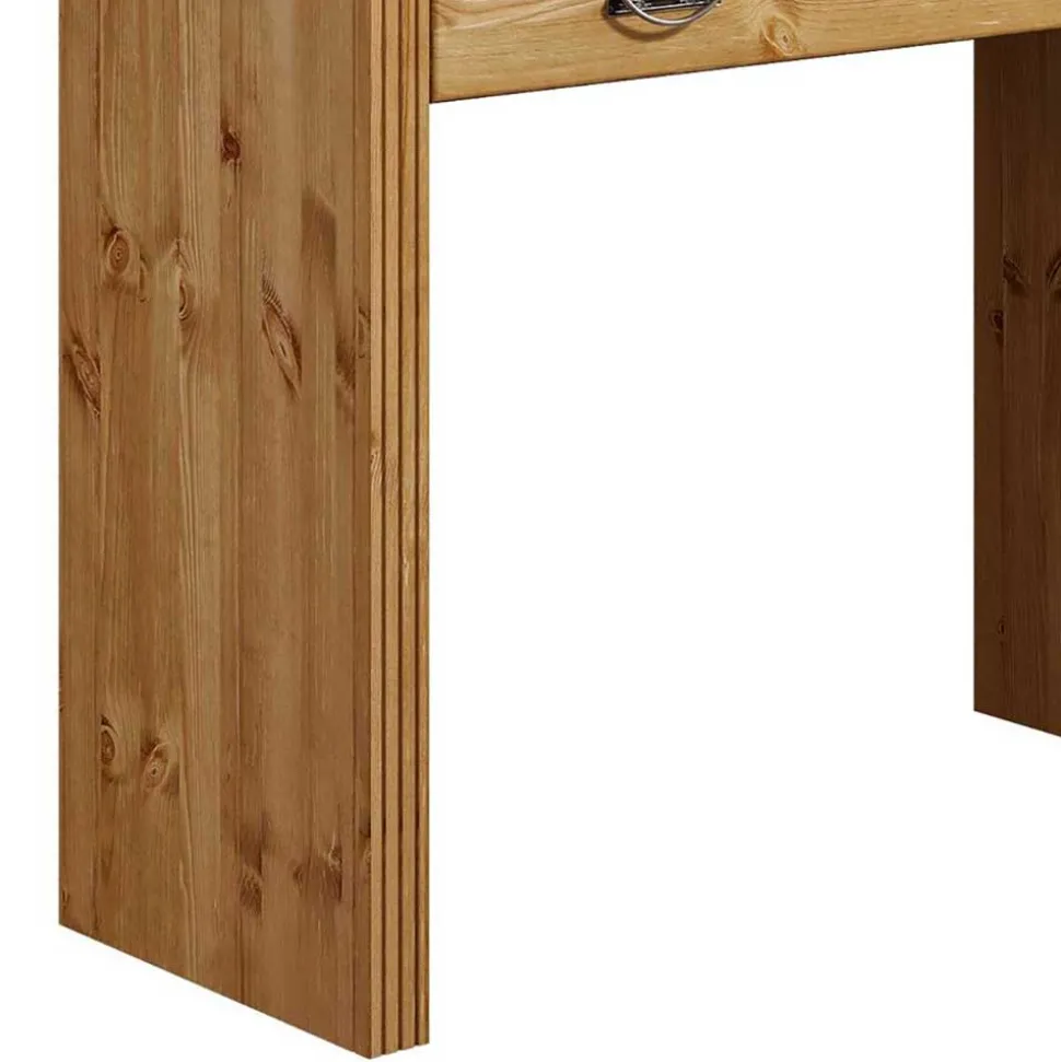 Der Schminktisch „Vocoja“ wird aus massivem Kiefernholz gefertigt, das nicht nur eine wunderschöne Maserung aufweist, sondern auch für seine Robustheit und Langlebigkeit bekannt ist. Die natürliche Beschaffenheit des Holzes verleiht jedem Tisch eine einzigartige und charmante Optik, die sich nahtlos in verschiedene Einrichtungsstile einfügt.