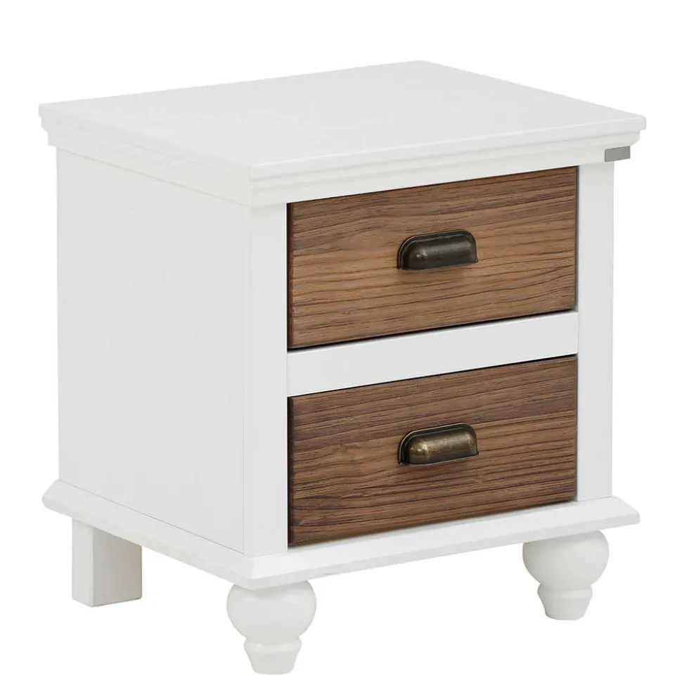 Die Nachtkommode „Yakos“ bringt gemütlichen Modern-Country-Charme in Ihr Schlafzimmer. Die gelungene Kombination aus Weiß und Braun verleiht dem Möbelstück eine einladende Ausstrahlung, während liebevolle Details im Vintage-Stil für eine nostalgische Atmosphäre sorgen. Ob als praktischer Ablageplatz für Ihre Nachtlektüre oder als stilvolle Dekoration – „Yakos“ wird zu einem unverzichtbaren Begleiter in Ihrem Zuhause.