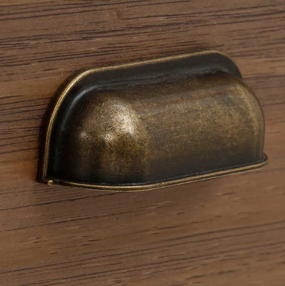 - Handliche Metall-Muschelgriffe in Altmessingfarben