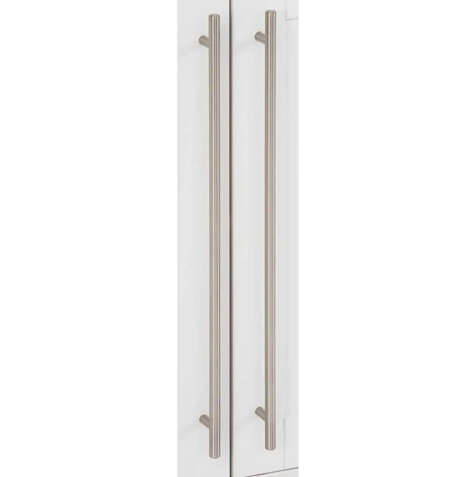 Die Rückwand aus Hartfaserplatte gewährleistet Stabilität und Langlebigkeit. Elegante Metall-Stangengriffe in Chromfarben unterstreichen das edle Design. Das formschöne, nach vorne teiloffene Sockelgestell rundet das Gesamtbild ab. Aus Sicherheitsgründen empfehlen wir die Verwendung einer Kippsicherung.