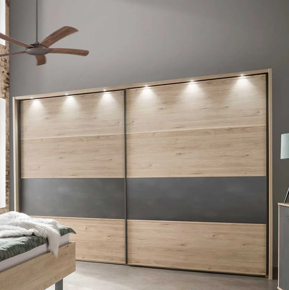Das Design des „Licruva“-Schlafzimmers besticht durch eine harmonische Verbindung von warmen Eichefarben und elegantem Dunkelgrau im Schiefer-Dekor. Die modernen Farben verleihen Ihrem Schlafzimmer eine zeitgemäße, aber dennoch wohnliche Atmosphäre. Der klare, geradlinige Stil fügt sich nahtlos in verschiedenste Einrichtungsstile ein – von modern-minimalistisch bis hin zu urbanem Chic. Dank dieser zeitlosen Kombination wird Ihr Schlafzimmer garantiert zum stilvollen Highlight.